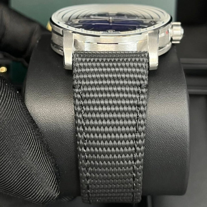 Black rubber-coated strap with 18-carat white gold pin buckle.