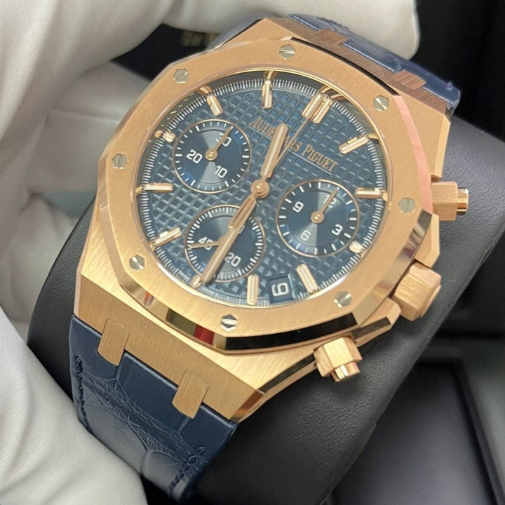 Audemars Piguet ROYAL OAK SELFWINDING CHRONOGRAPH “50TH ANNIVERSARY” BLUE STRAP BLUE DIAL (Ref # 26240OR.OO.D315CR.01)