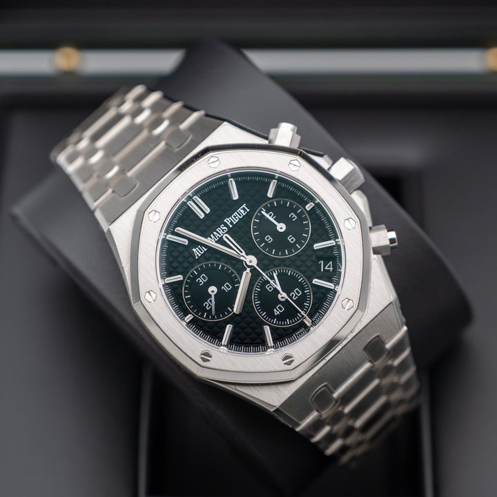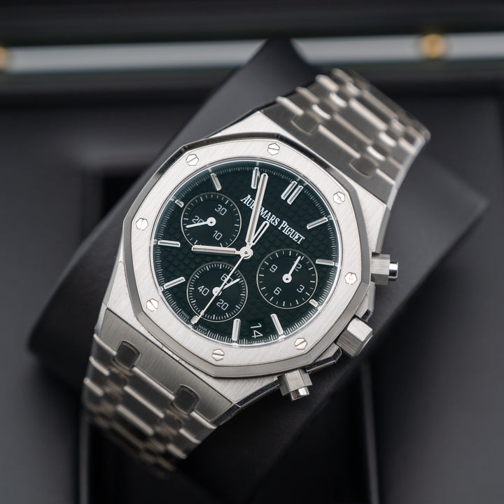 Audemars Piguet ROYAL OAK SELFWINDING CHRONOGRAPH “50TH ANNIVERSARY” STEEL BRACELET BLACK DIAL (Ref # 26240ST.OO.1320ST.02)