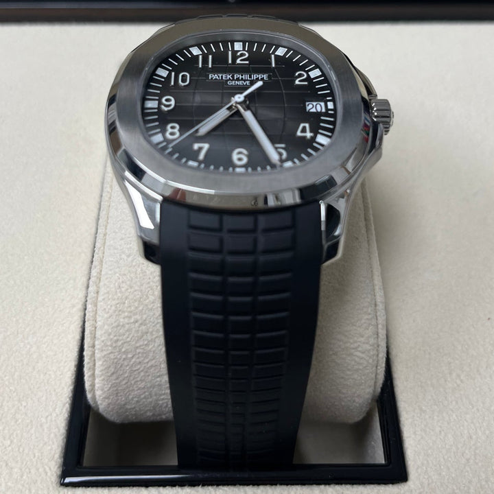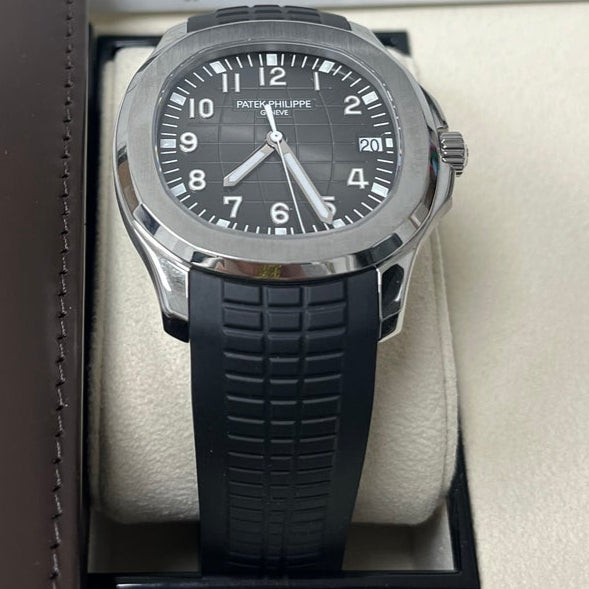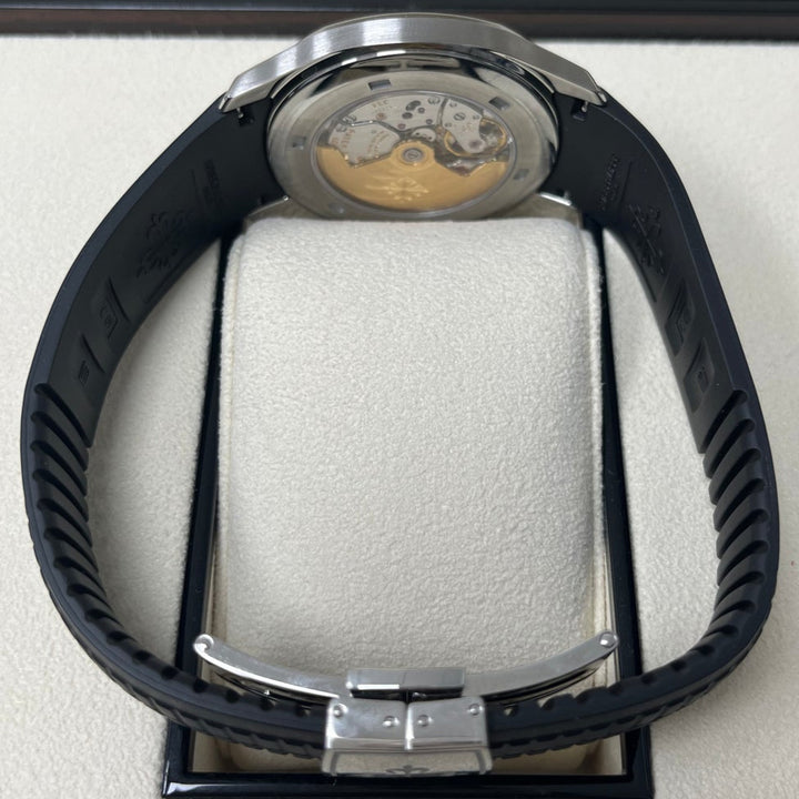 The Patek Philippe Aquanaut 5167A-001 is a modern sports luxury masterpiece, blending stainless steel construction with a sleek black embossed dial. Designed for both elegance and performance, this model features a 40mm case, a sapphire crystal caseback, and the calibre 324 S C self-winding movement with a 45-hour power reserve. Its "Tropical" black rubber strap offers durability and comfort, while its 120-meter water resistance ensures versatility. Whether for adventure or refined wear, the Aquanaut 5167A-001 is a true symbol of contemporary horology.