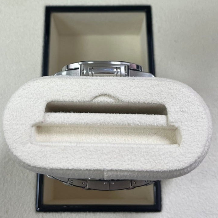 The steel bracelet comes with a fold-over clasp, endowed with a new adjustment system, providing the wearer with between 2 and 4 mm of extra bracelet length for increased comfort.