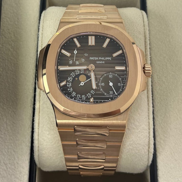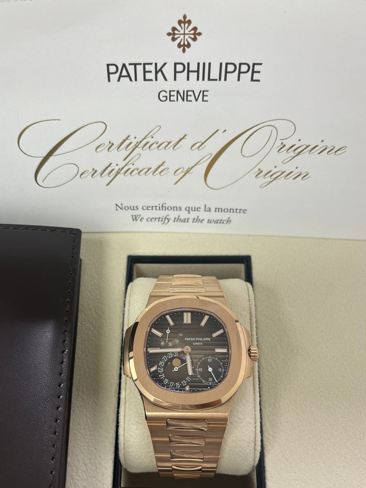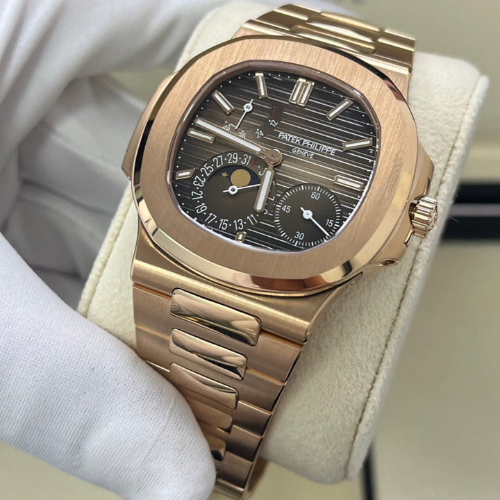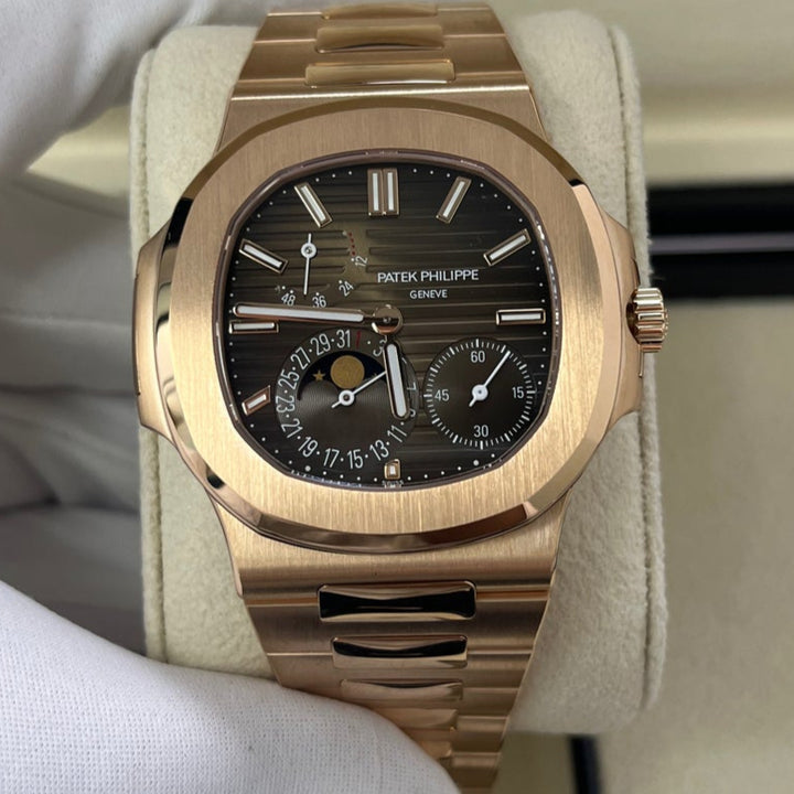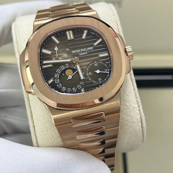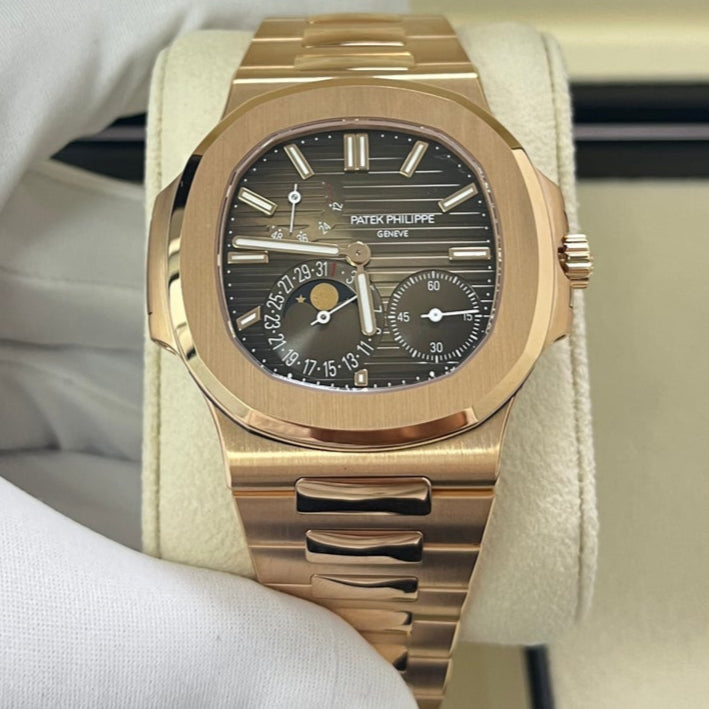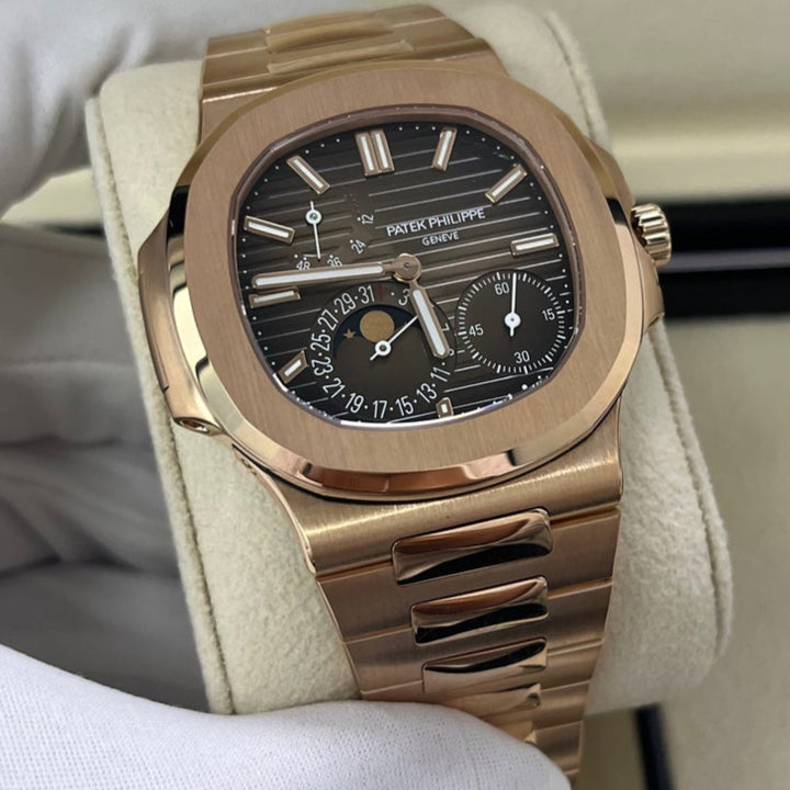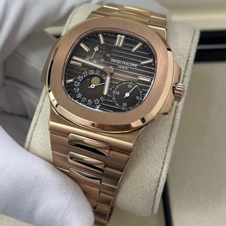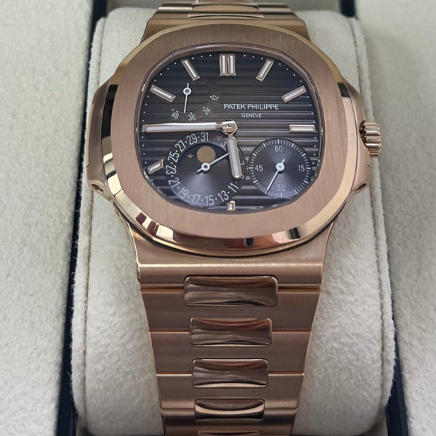 Patek Philippe Nautilus Moon Phase Rose Gold 40mm Brown Black Dial 5712/1R-001