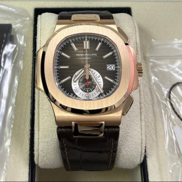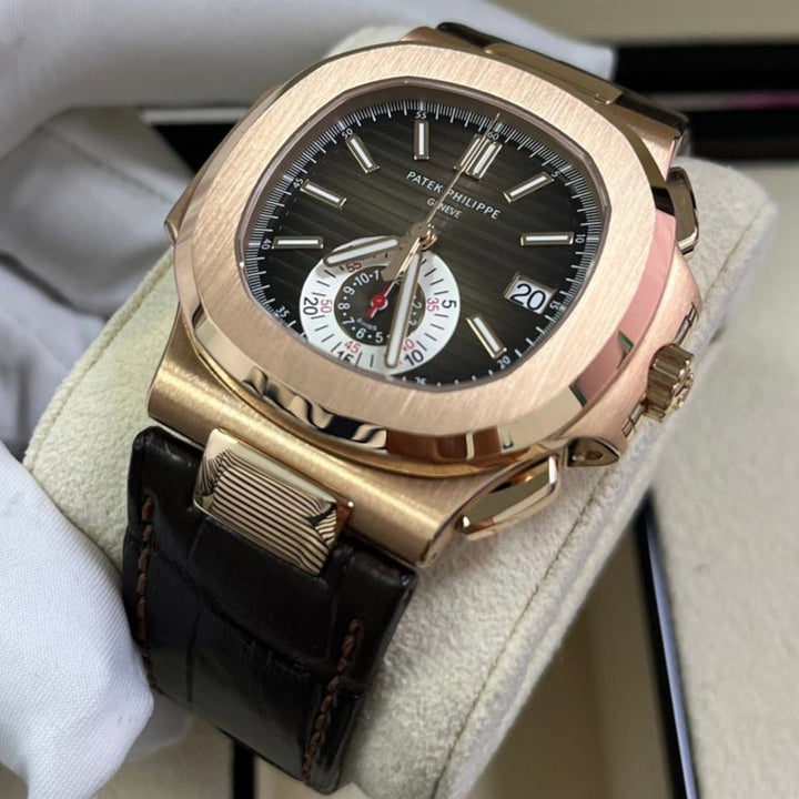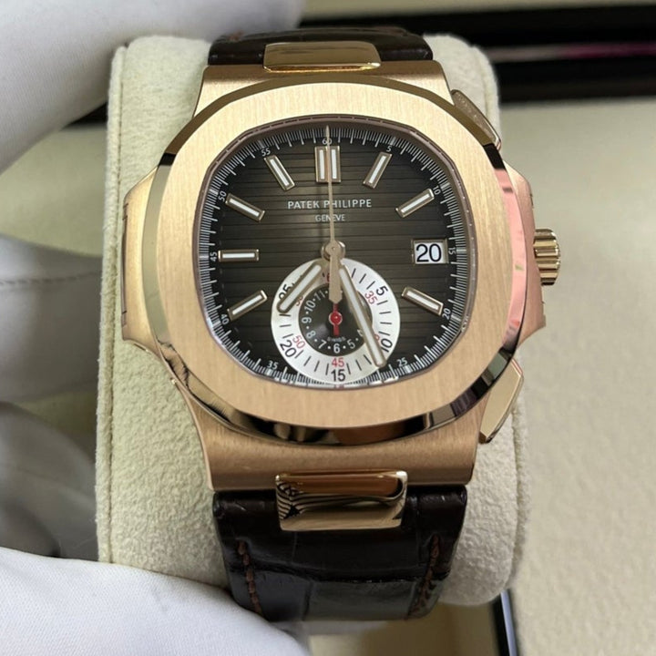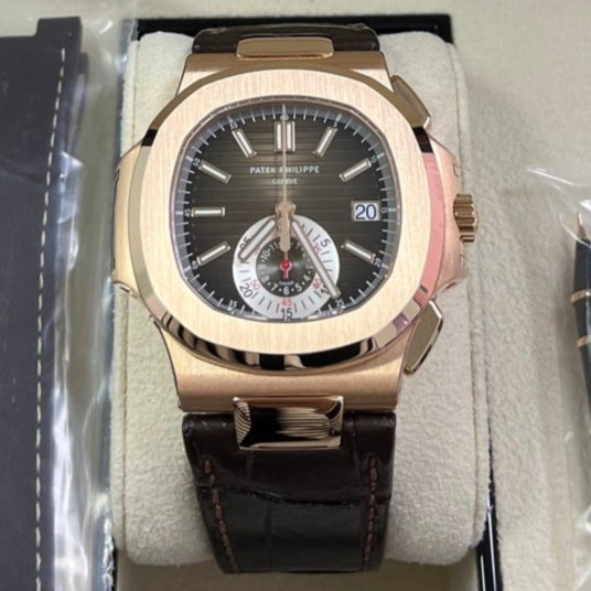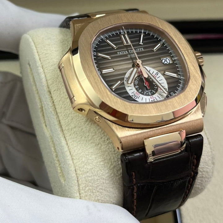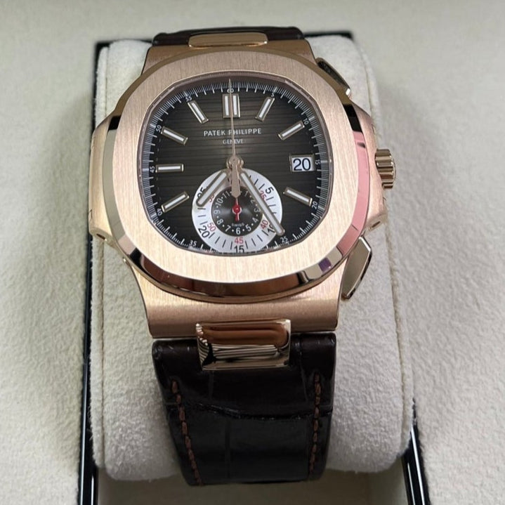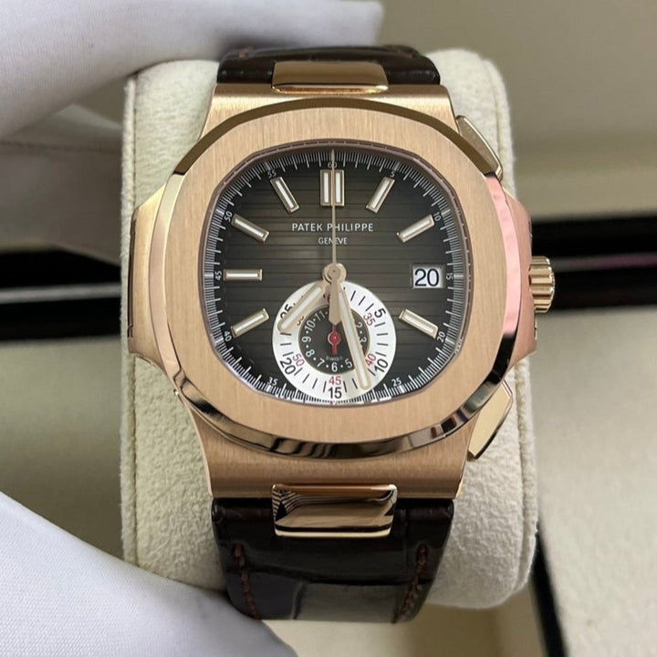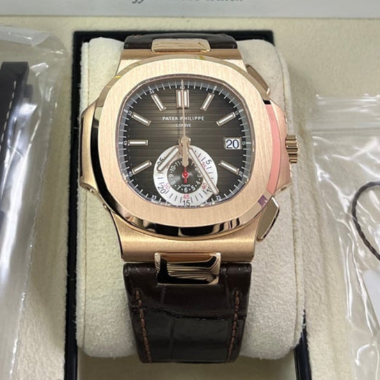 Patek Philippe Nautilus Rose Gold 40.5mm Brown Leather Strap 5980R