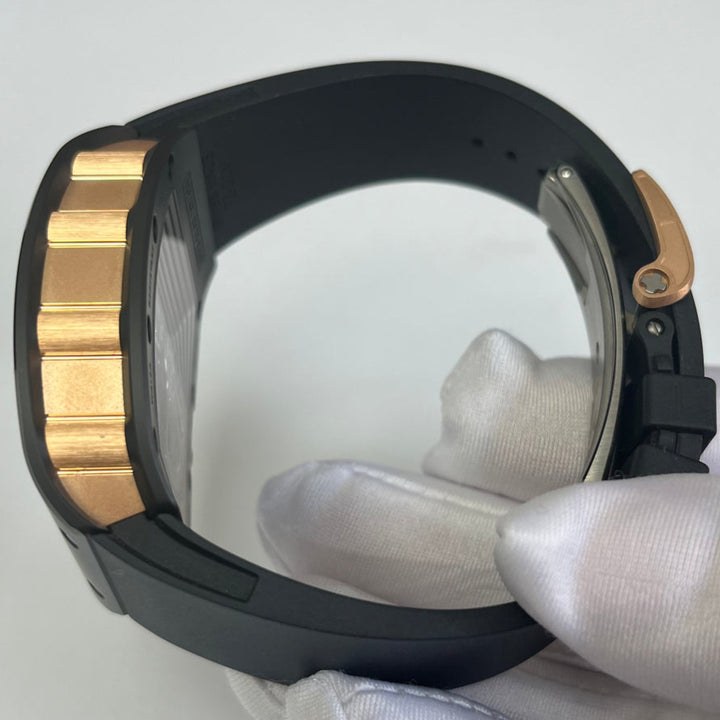 This 2022 Richard Mille 72-01 is entirely crafted in black ceramic and features a transparent open-worked dial, showcasing the intricate and busy movement. Not only is this timepiece a visual work of art, it is functionally marvelous. The flyback chronograph means that you can quickly restart the chronograph timer while it is still running, unlike most other chronographs, which must be stopped to restart, or you risk damaging the movement.