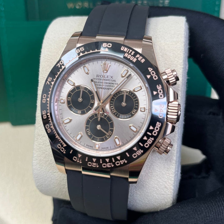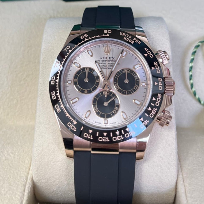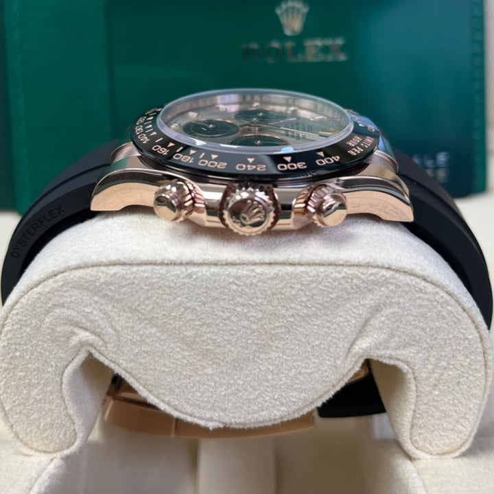 Rolex Cosmograph Daytona Rose Gold Dial Black Subdials Oysterflex (Reference # 116515ln)