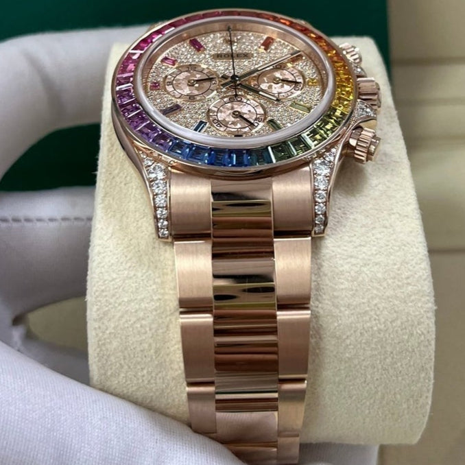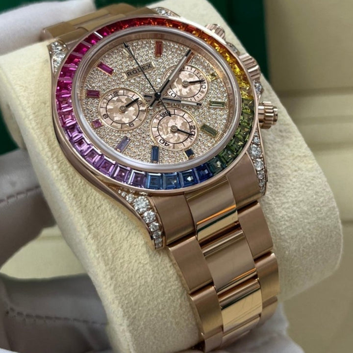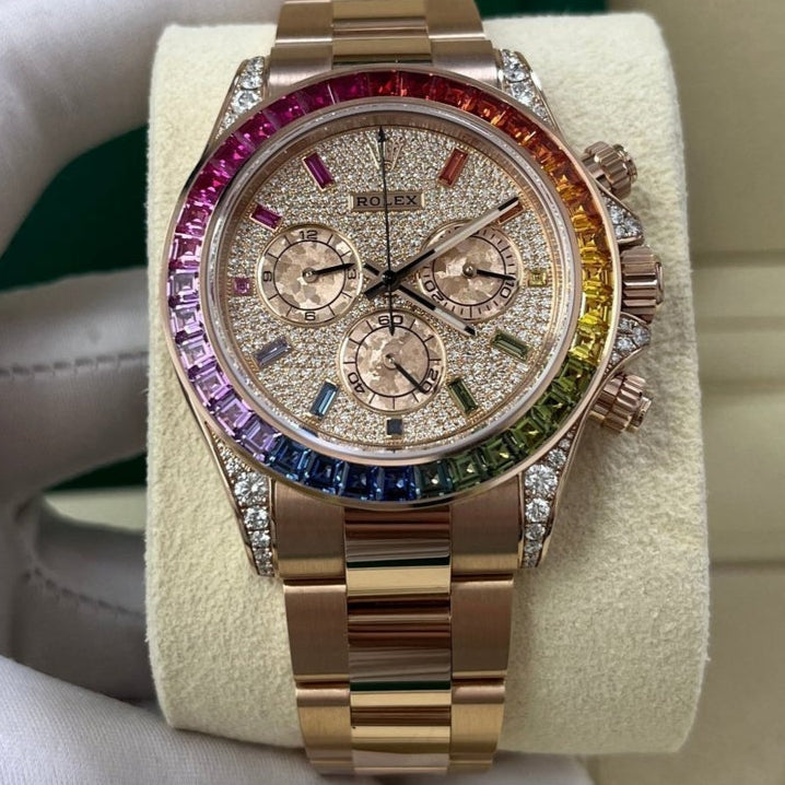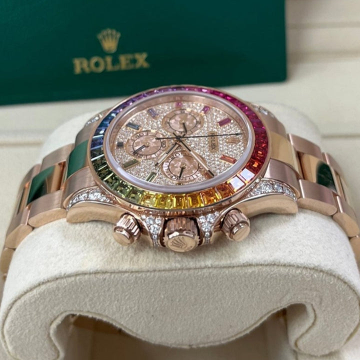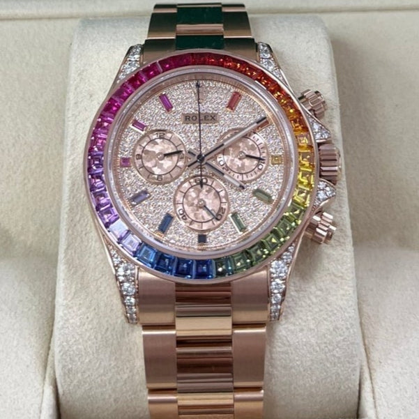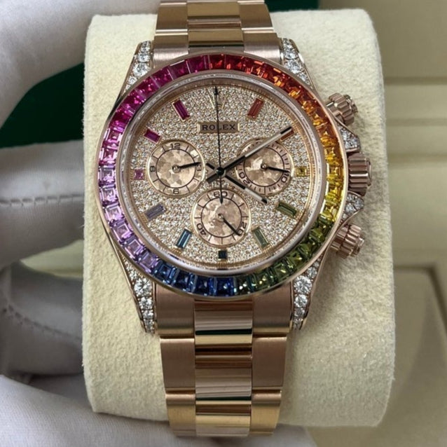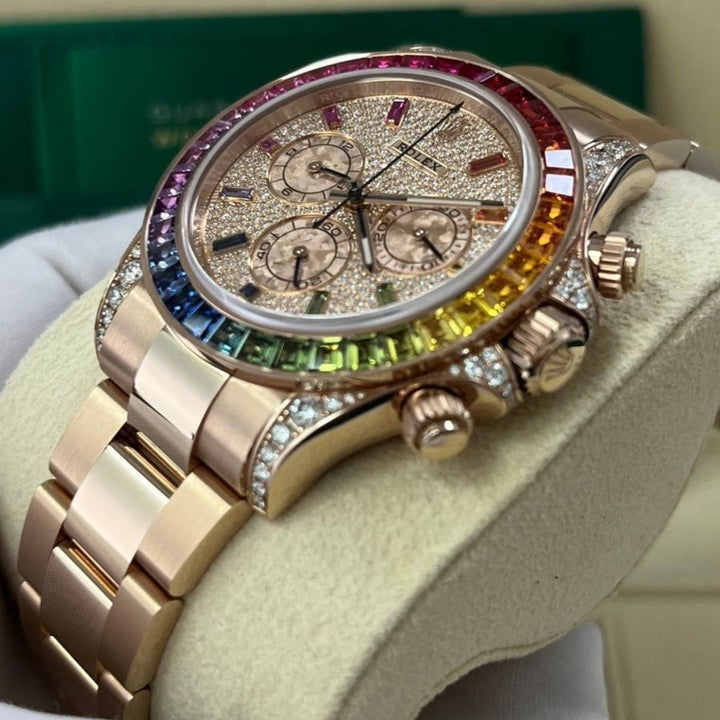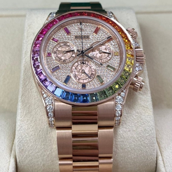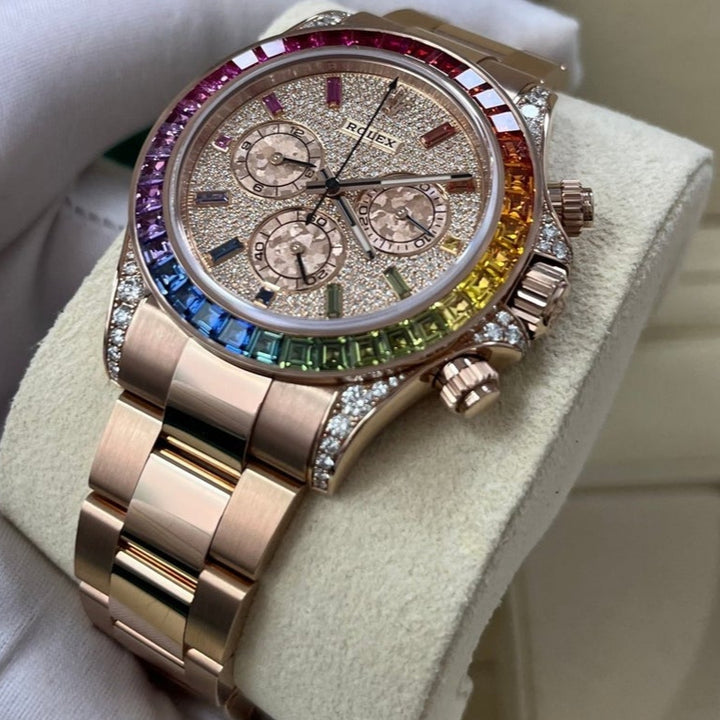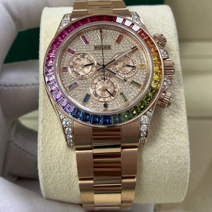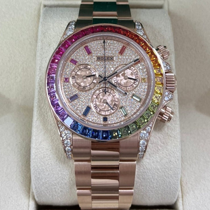 Rolex Cosmograph Everose Daytona Factory Diamond Rainbow Edition Ref# 116595RBOW)