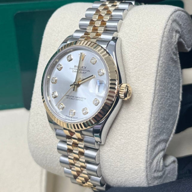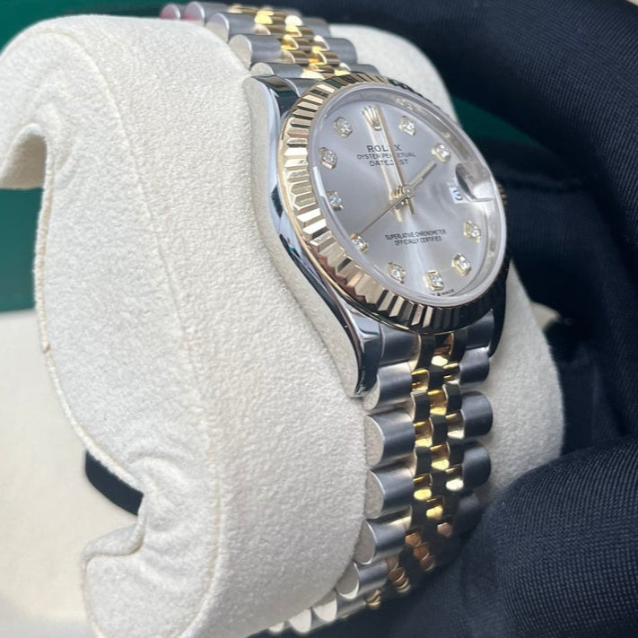 Rolex Datejust 31 Steel and Yellow Gold Datejust 31mm - Fluted Bezel - Silver Diamond Dial - Jubilee 278273