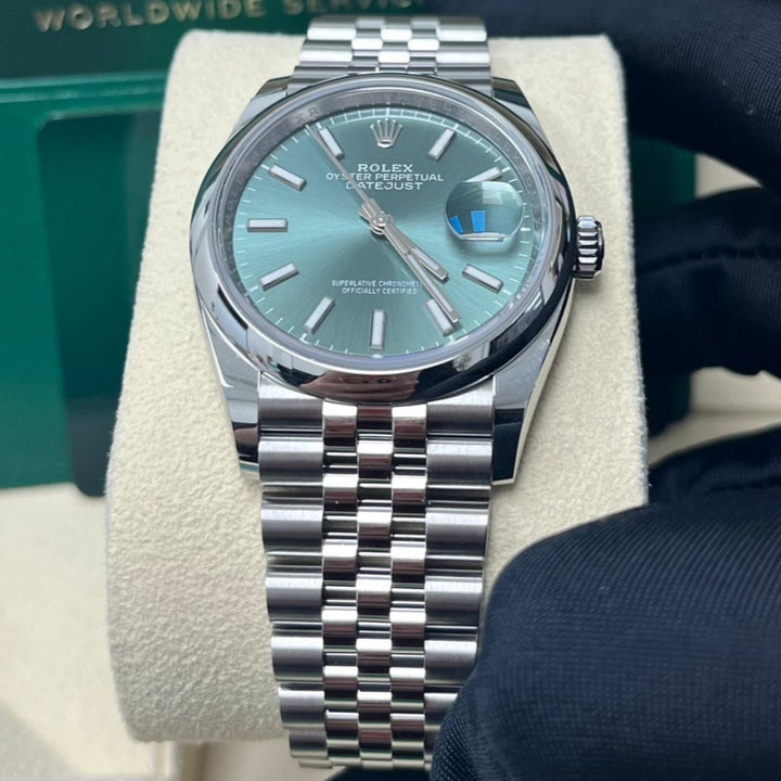 Rolex Datejust 36 Domed Bezel Mint Green Index Dial Jubilee Bracelet 126200