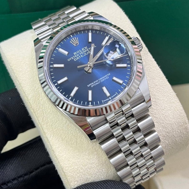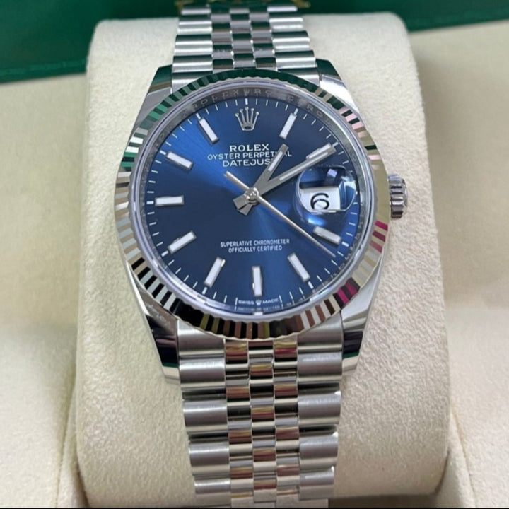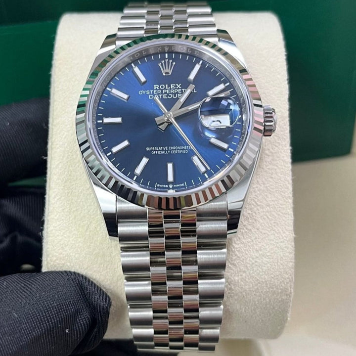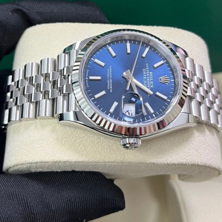 Rolex Datejust 36 Fluted Bezel Blue Index Dial Jubilee Bracelet 126234