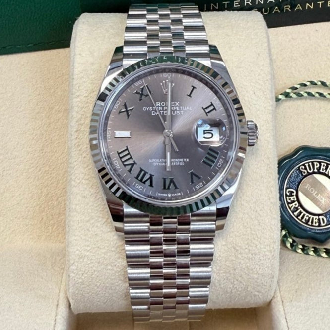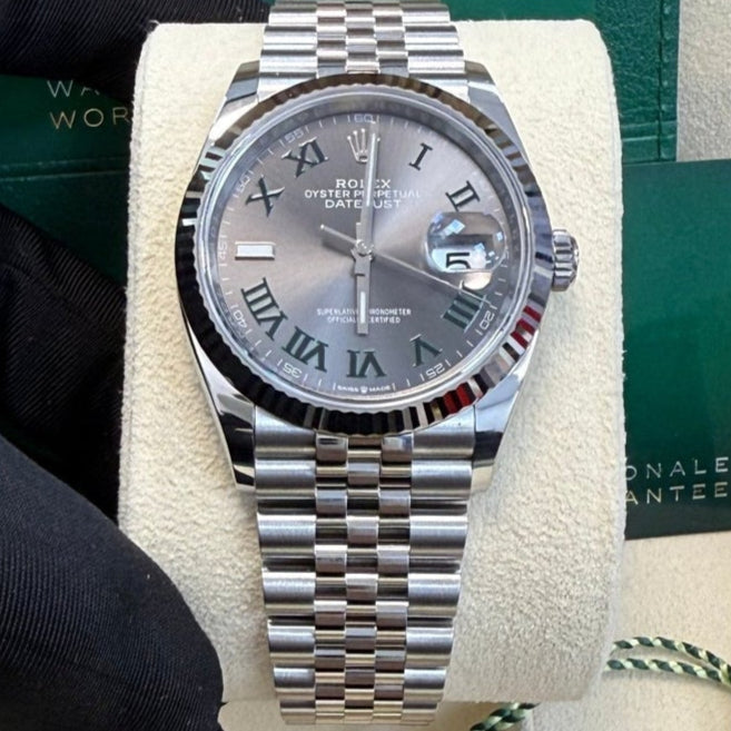 Rolex Datejust 36 Fluted Bezel Slate Roman Dial Jubilee Bracelet 126234