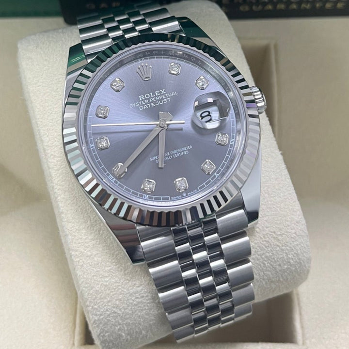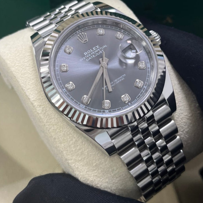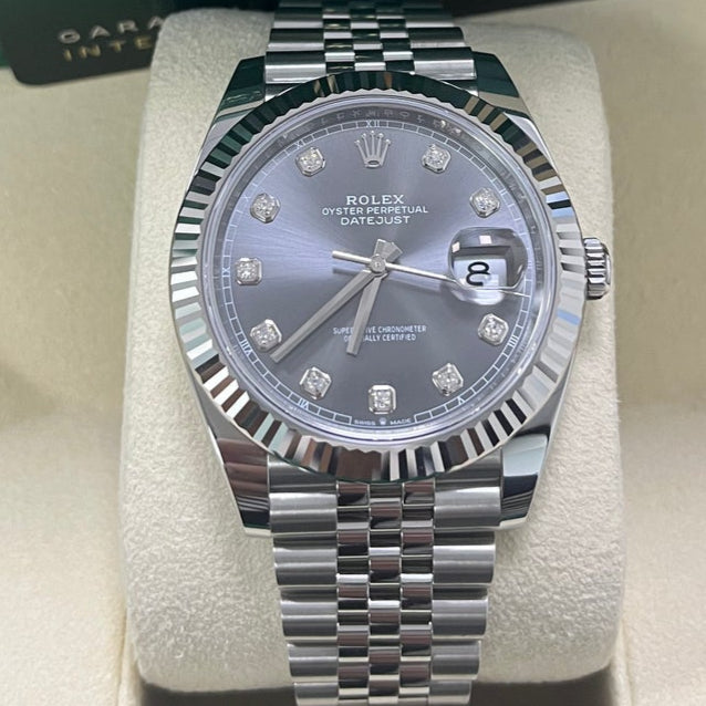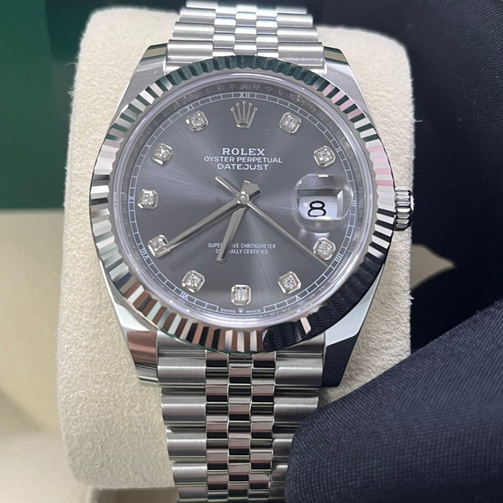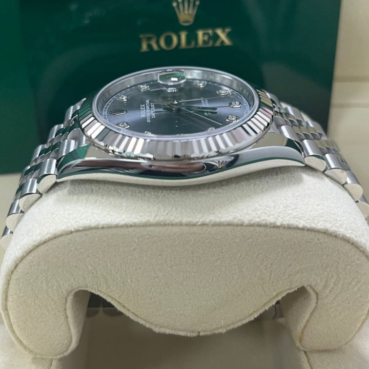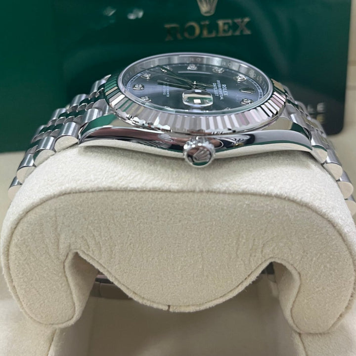 Rolex Datejust 41-18K White Gold & Steel - Dark Rhodium Diamond Dial - Jubilee (Ref # 126334)