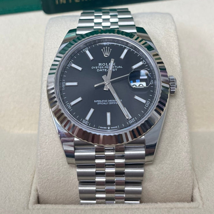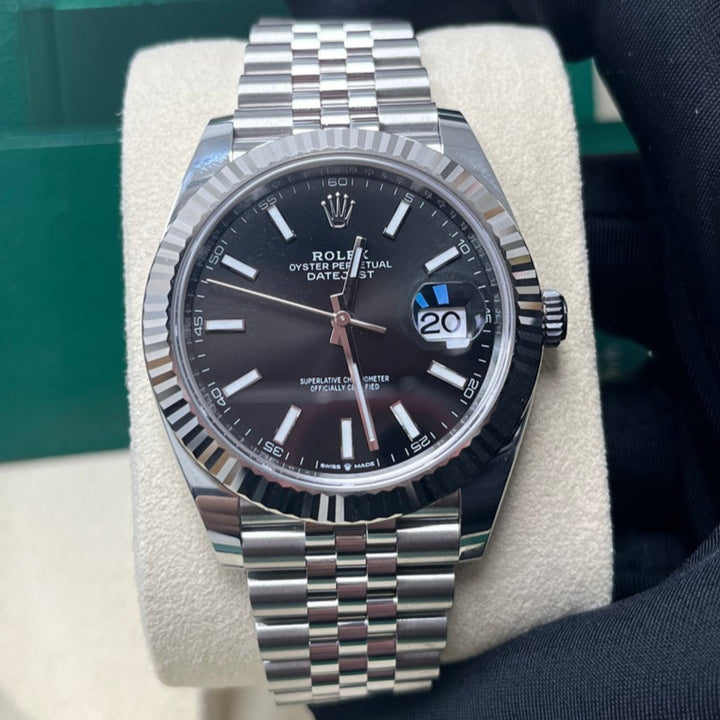 Rolex Datejust 41 Stainless Steel & White Gold - Black Index Dial - Fluted Bezel Jubilee Bracelet (Ref# 126334)