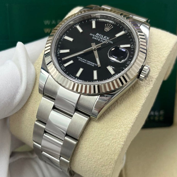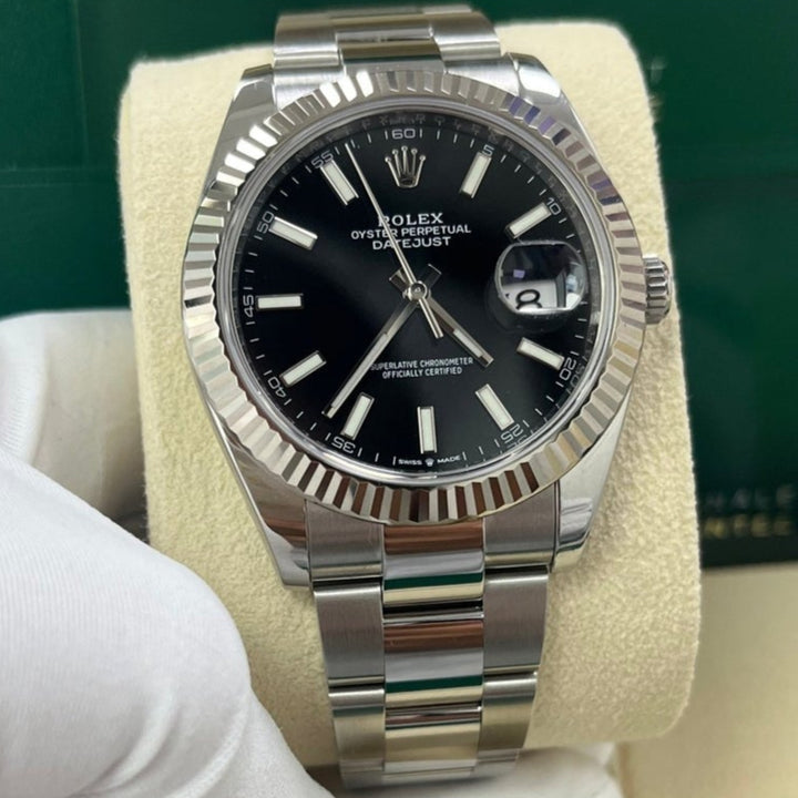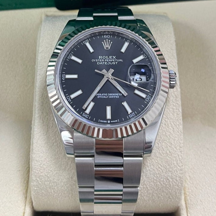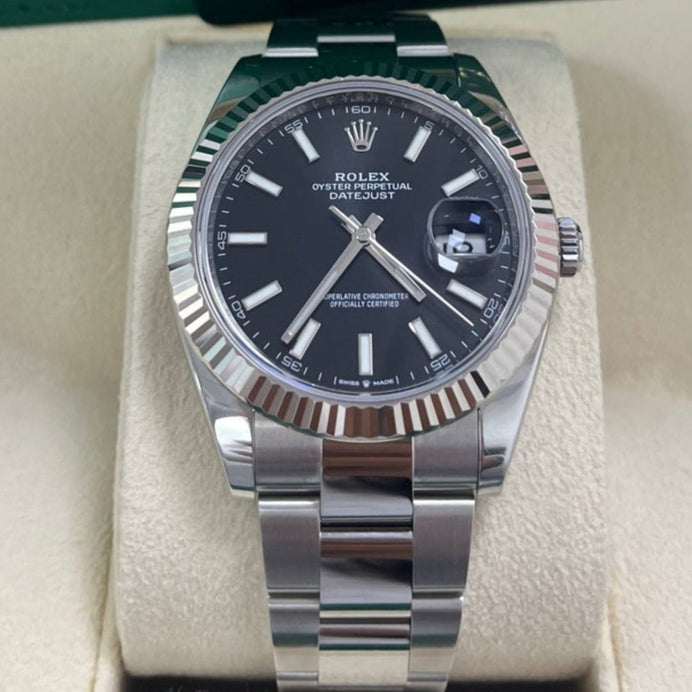 Rolex Datejust 41 Stainless Steel & White Gold - Black Index Dial - Fluted Bezel (Ref# 126334)