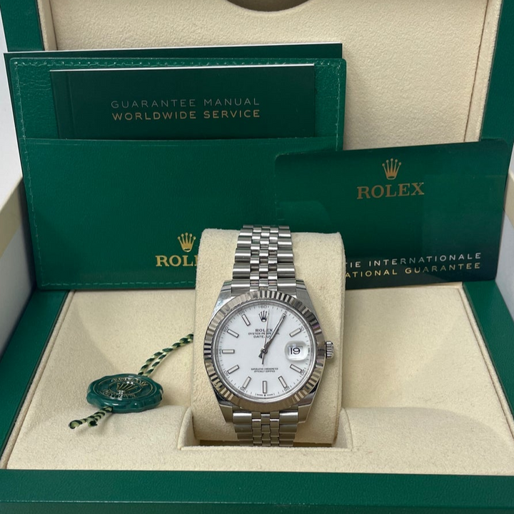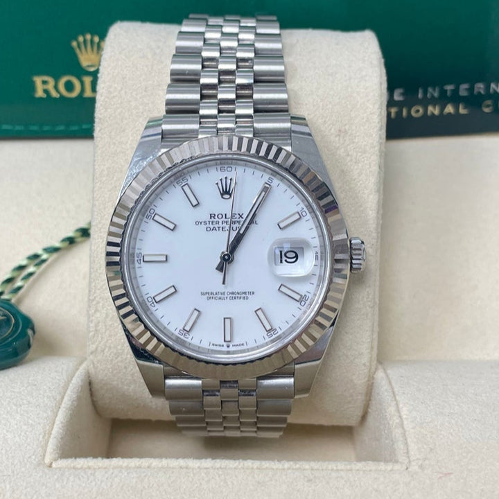 Rolex Datejust 41/ Stainless Steel & White Gold/ White Index Dial/ Fluted Bezel/ Jubilee Bracelet (Ref# 126334)