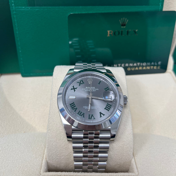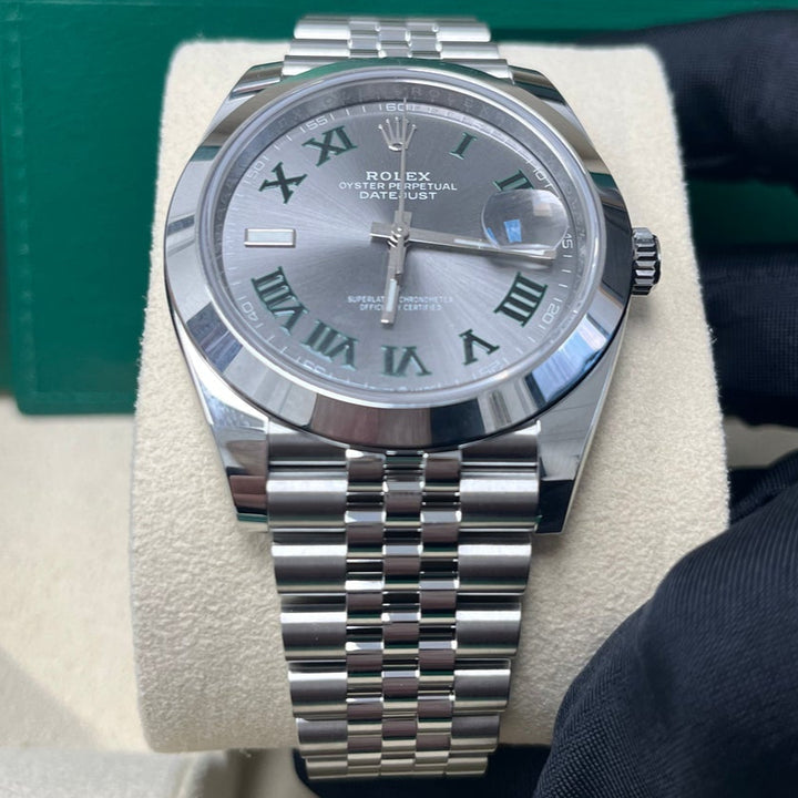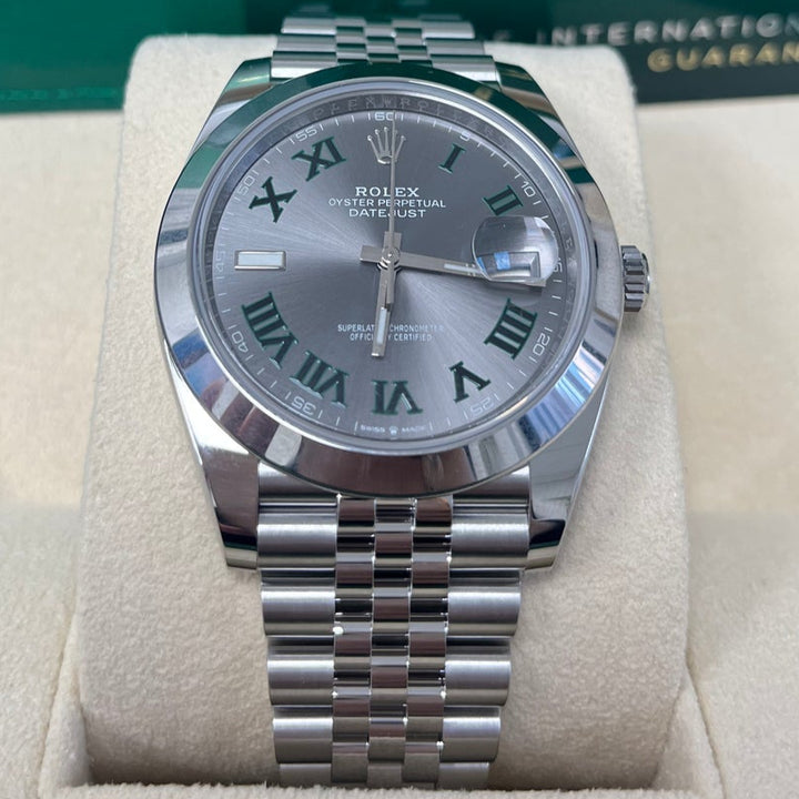 Rolex Datejust 41mm Steel Wimbledon Slate Green Roman Dial Jubilee Smooth Bezel