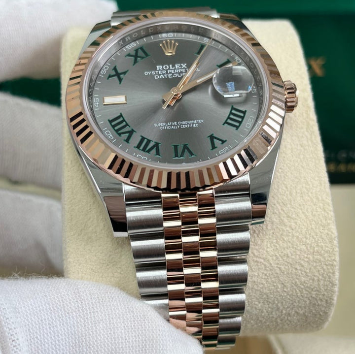 Rolex Datejust 41 Two-Tone Stainless Steel and Rose Gold - Grey Slate Roman Wimbledon - Fluted Bezel - Jubilee Bracelet (Ref#126331)