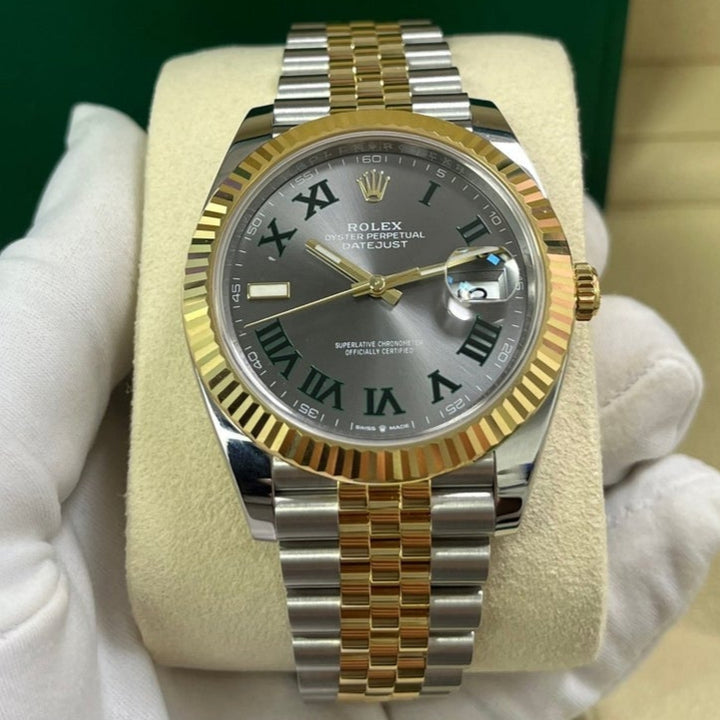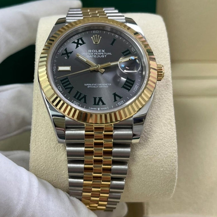 Rolex Datejust 41 Two-Tone Yellow Gold & Stainless Steel - Grey Slate Roman Wimbledon Dial - Fluted Bezel - Jubilee Bracelet (Ref# 126333)