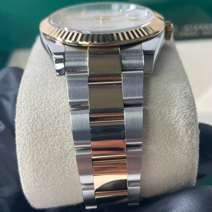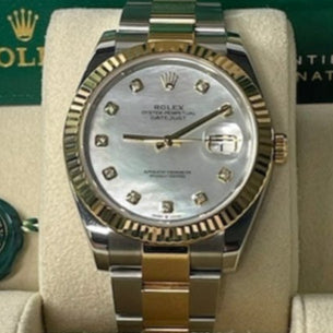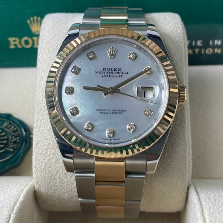 Rolex Datejust 41 Yellow Gold & Steel Fluted Bezel White Mother Of Pearl Diamond Dial Oyster (Ref # 126333)