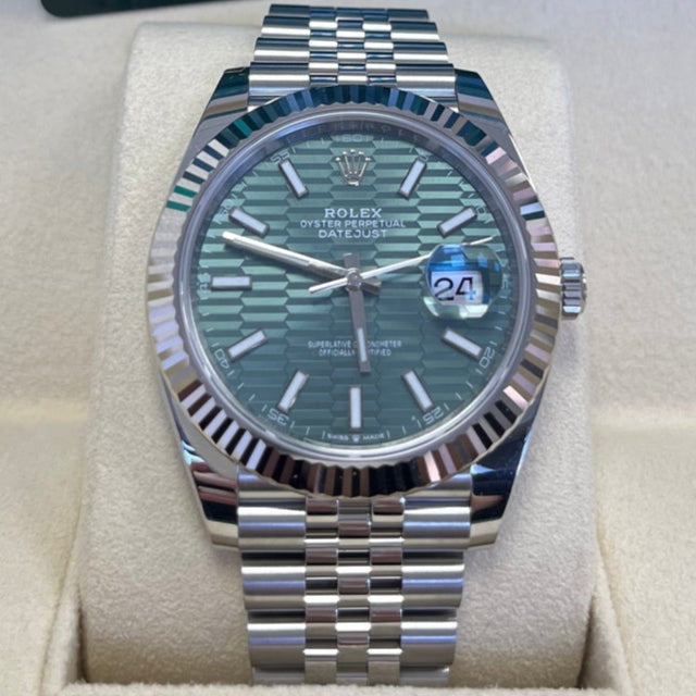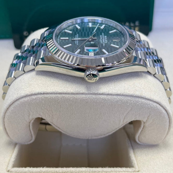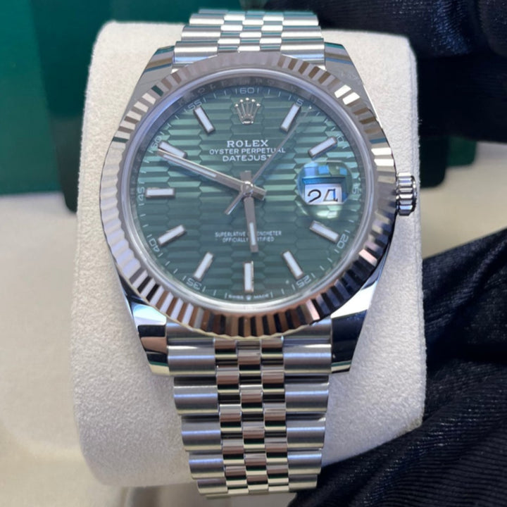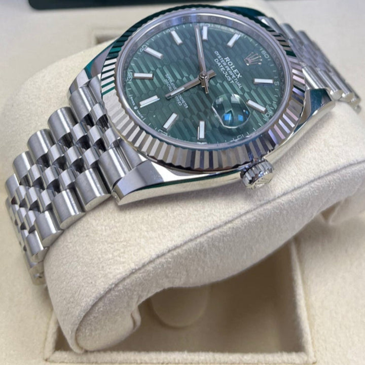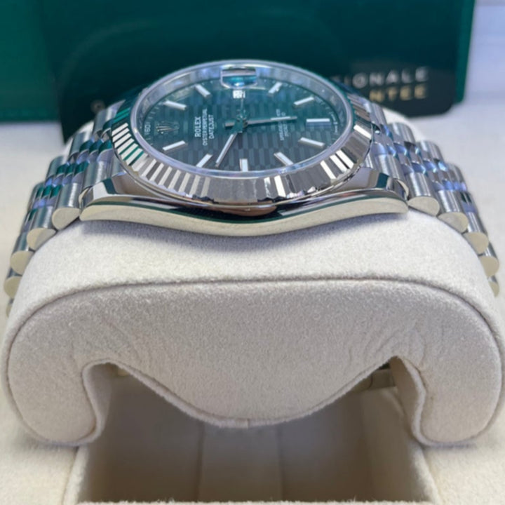 Rolex Datejust 41mm White Gold/Steel Mint Green Fluted Motif Index Fluted Bezel Jubilee Reference #126334
