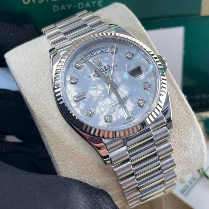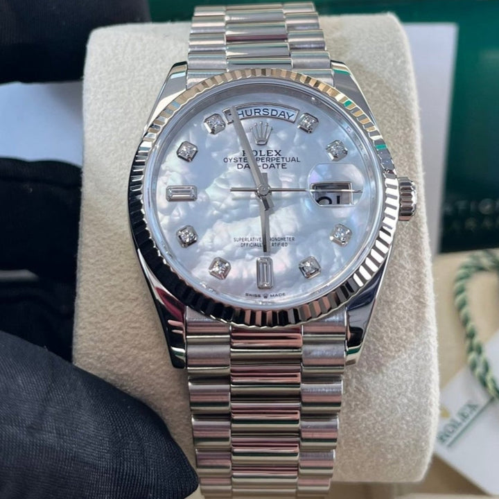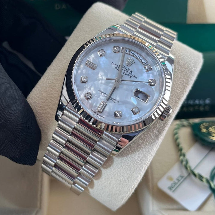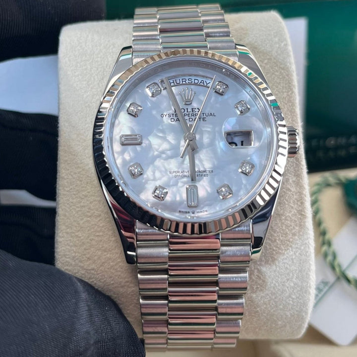Rolex Day-Date 36 Fluted Bezel Mother-of-Pearl Diamond Dial President Bracelet 128239