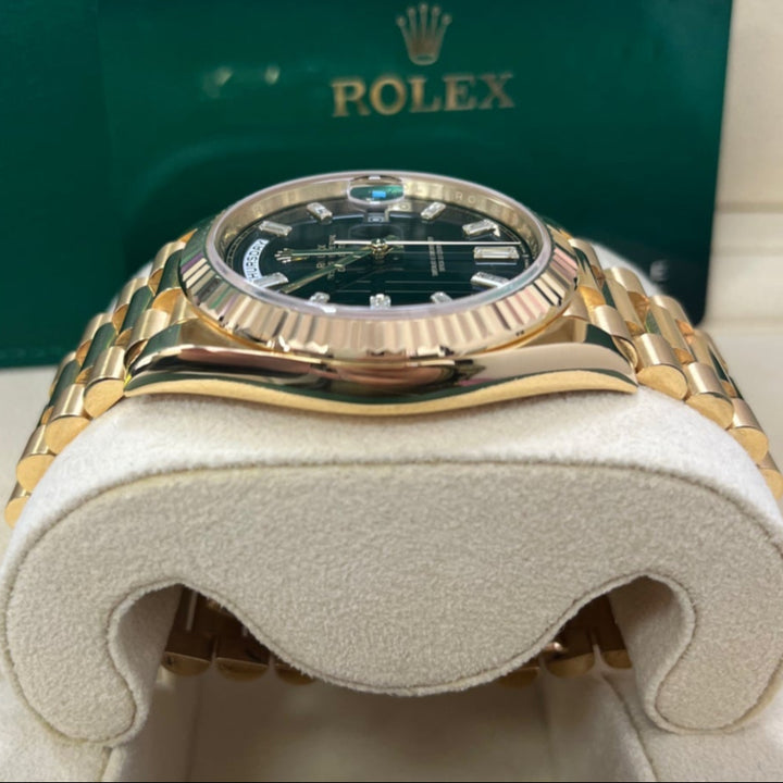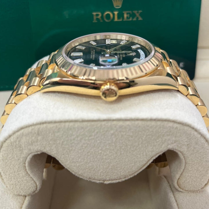 Rolex Day-Date 40 18k Yellow Gold - Baguette Diamond Dial - Fluted Bezel (Ref# 228238)