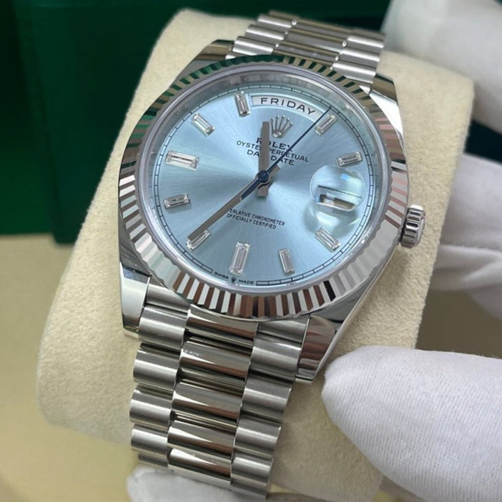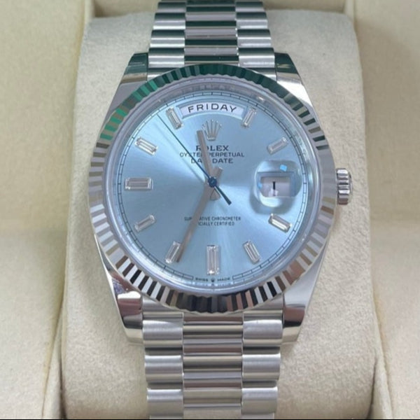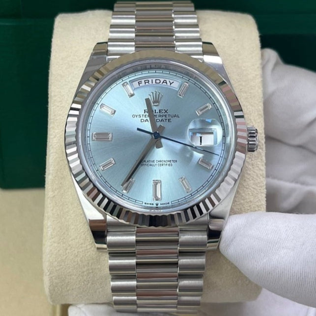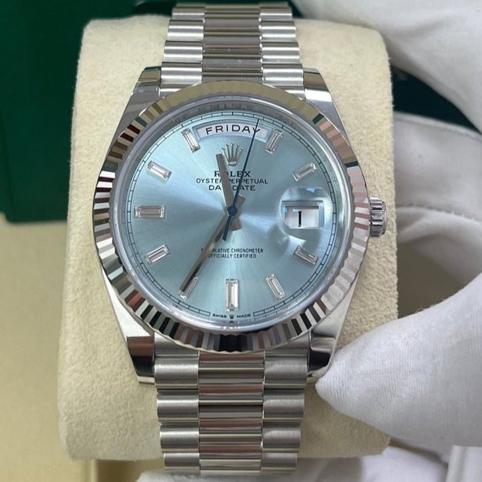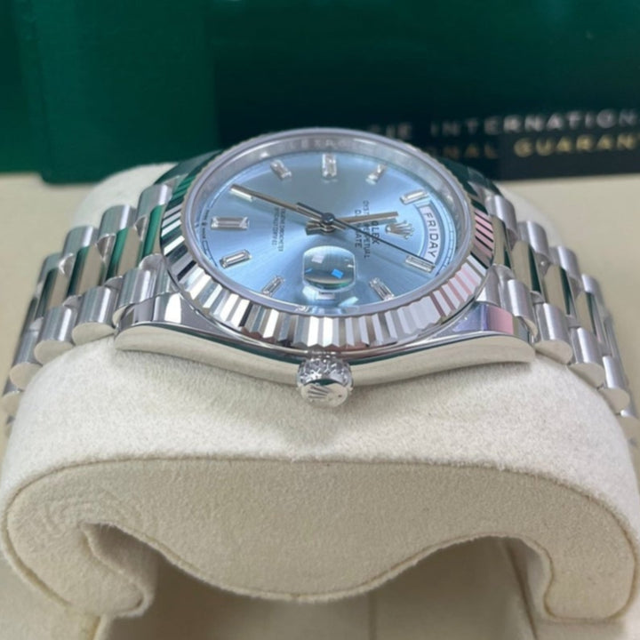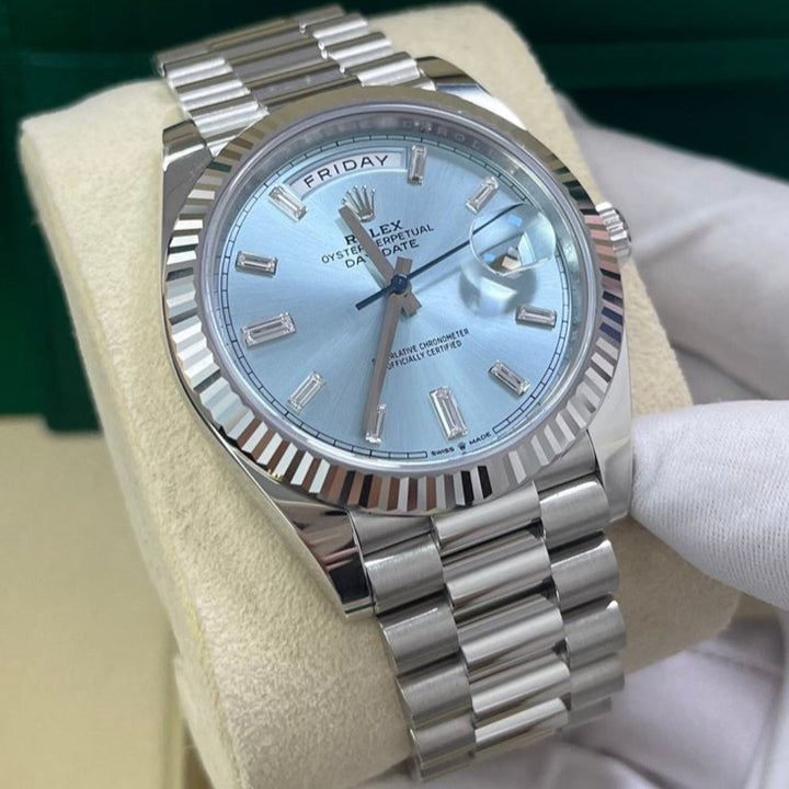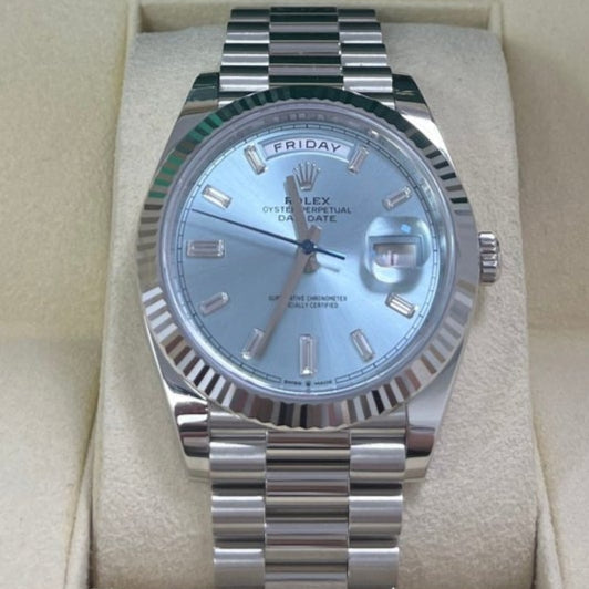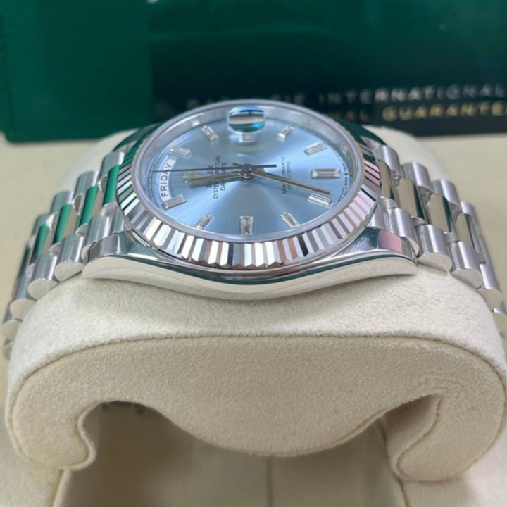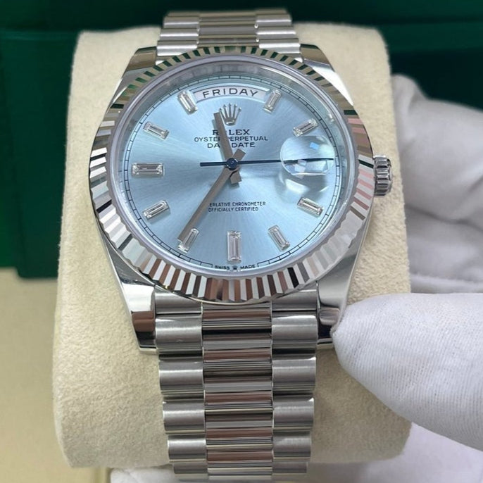 Rolex Day-Date 40 Platinum Day-Date 40 Watch - Fluted Bezel - Ice Blue Baguette Dial 228236