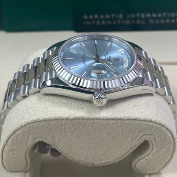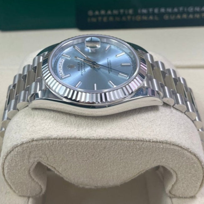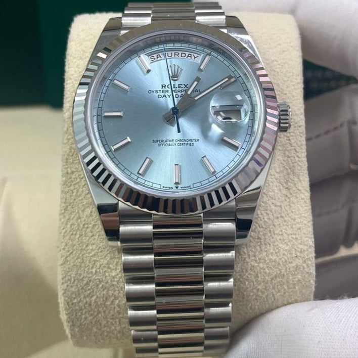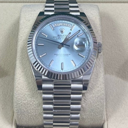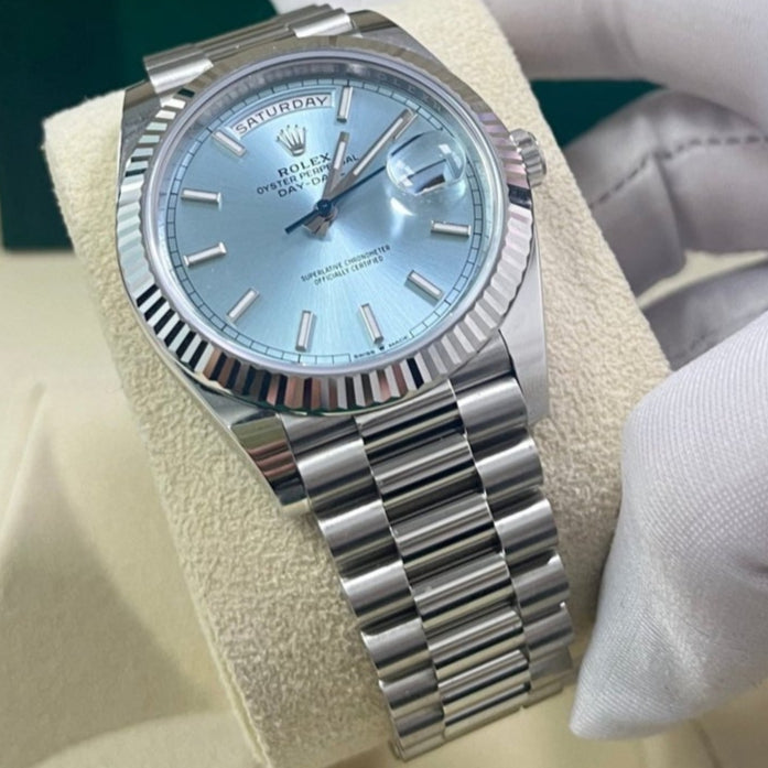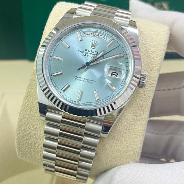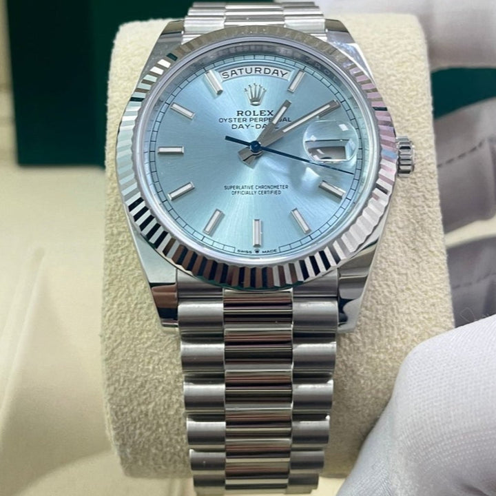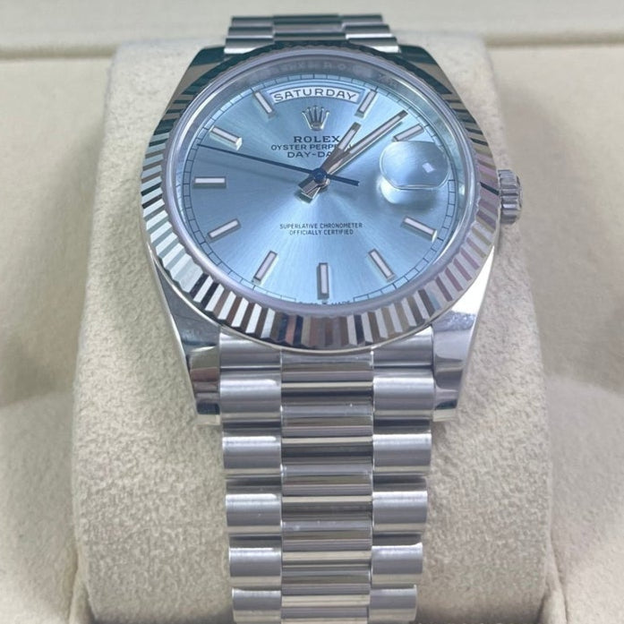 Rolex Day-Date 40 Platinum Day-Date 40 Watch - Fluted Bezel - Ice Blue Index Dial President Bracelet 228236