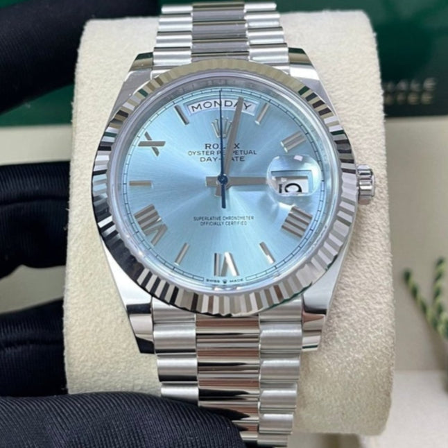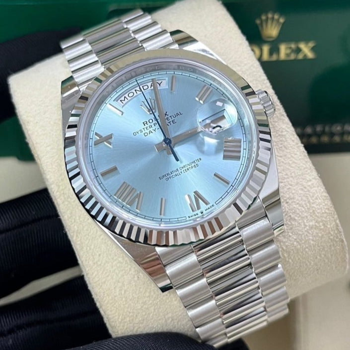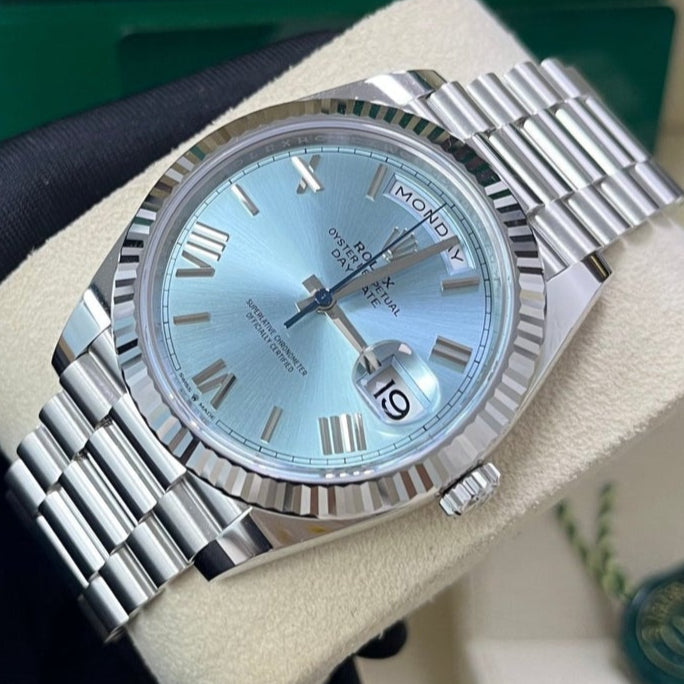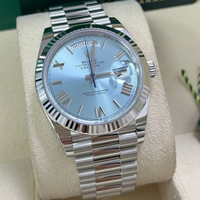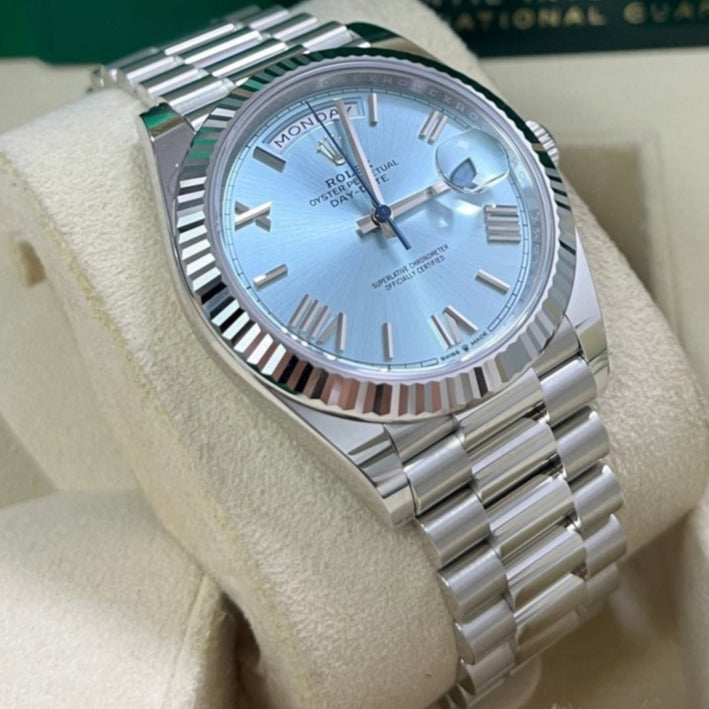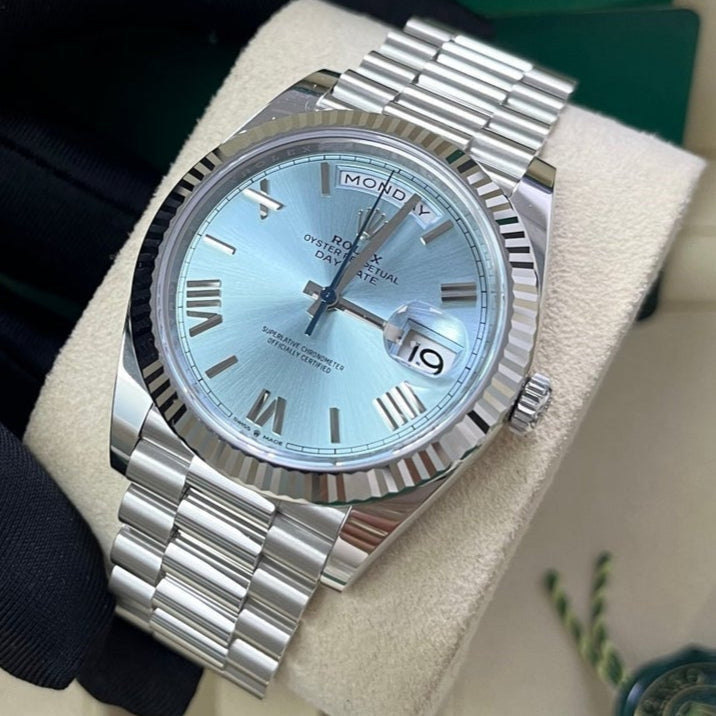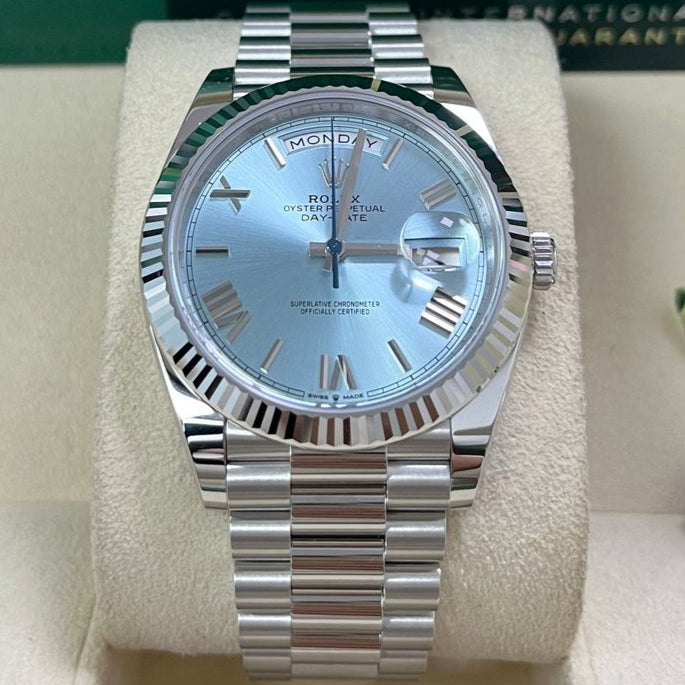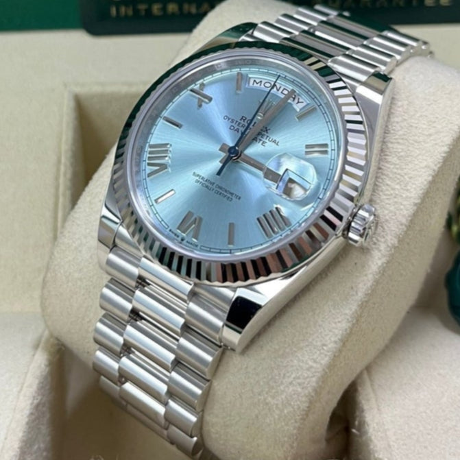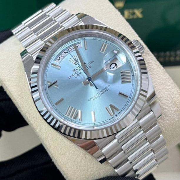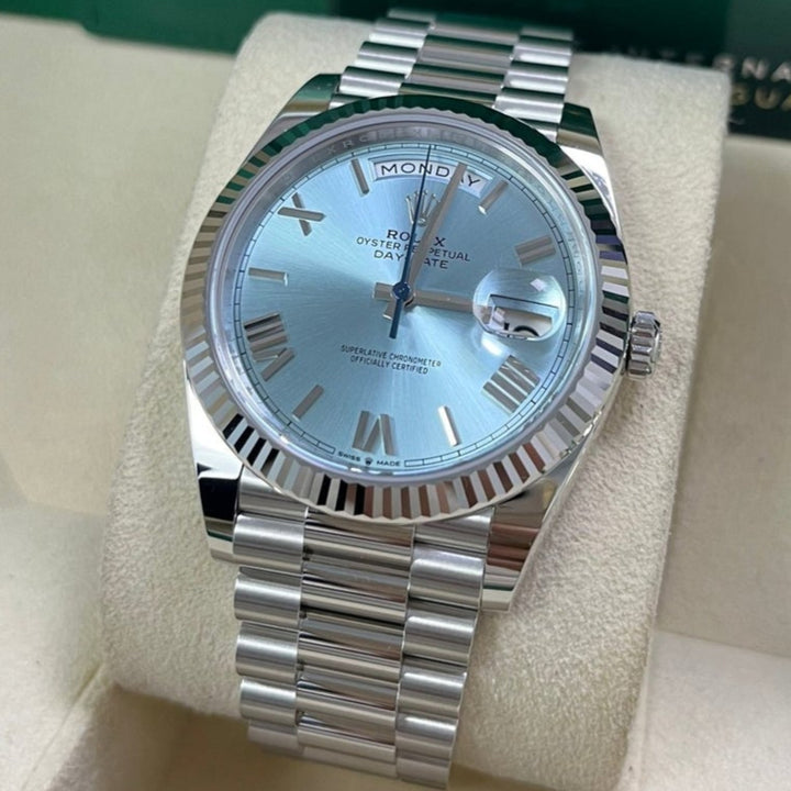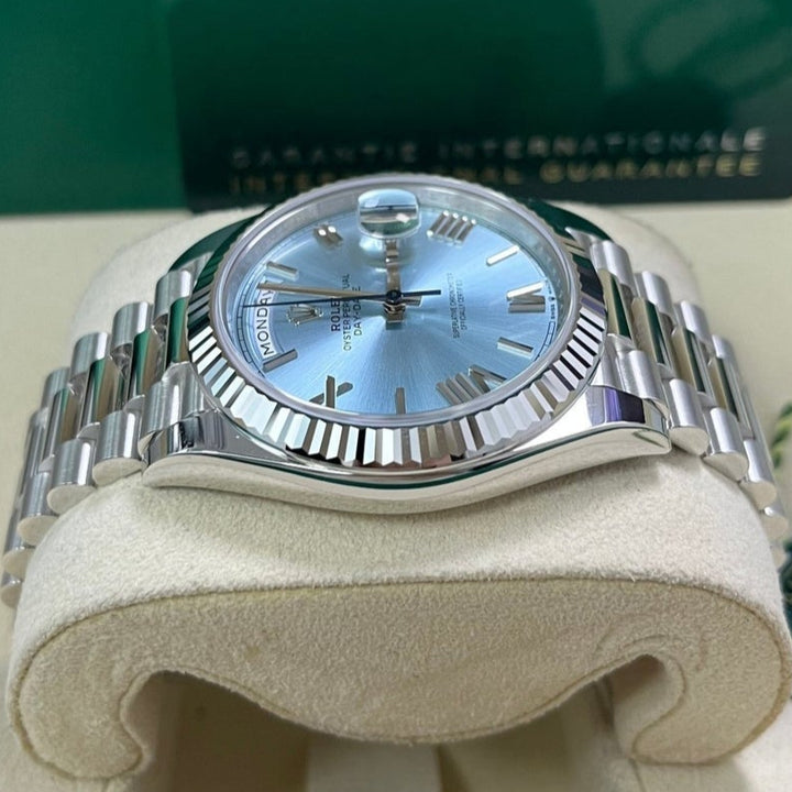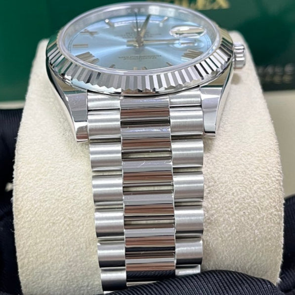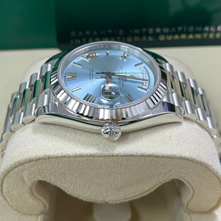 Rolex Day-Date 40 Platinum Day-Date 40 Watch - Fluted Bezel - Ice Blue Roman Dial President Bracelet 228236