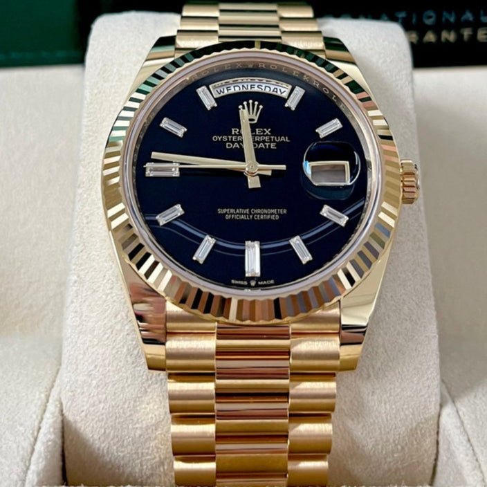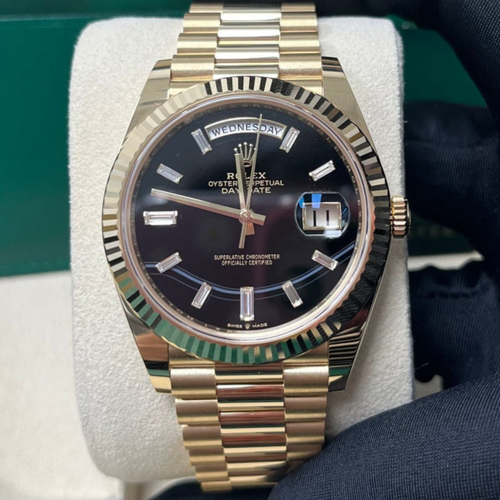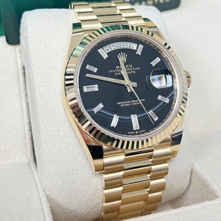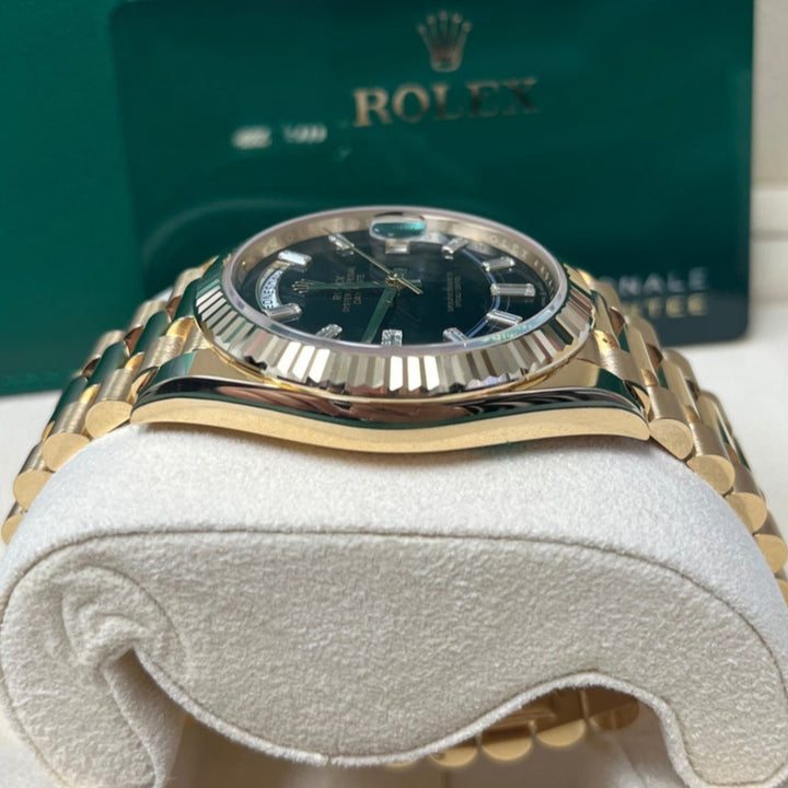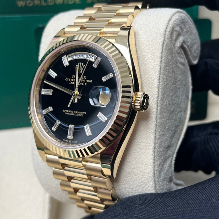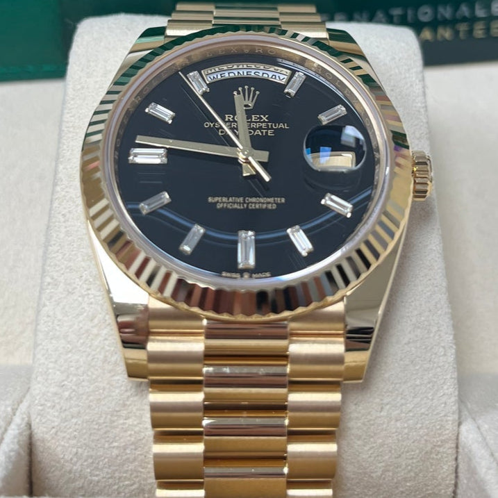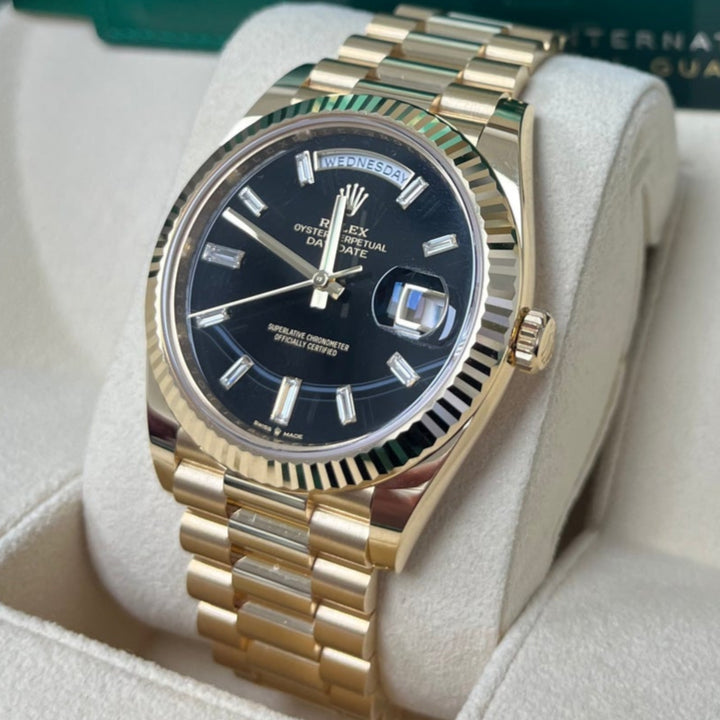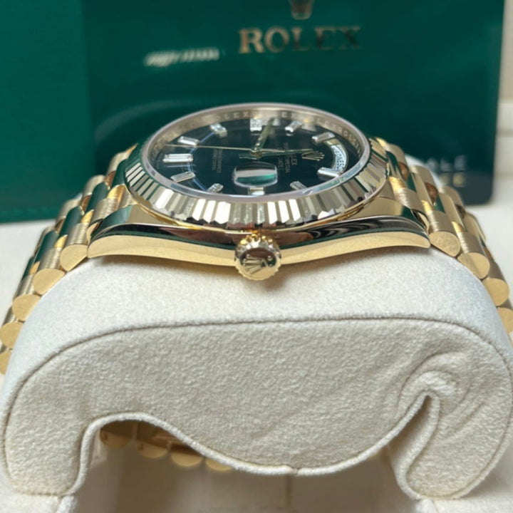Rolex Day-Date 40 Yellow Gold Day-Date 40 Watch - Fluted Bezel - Onyx Dial - President Bracelet 228238