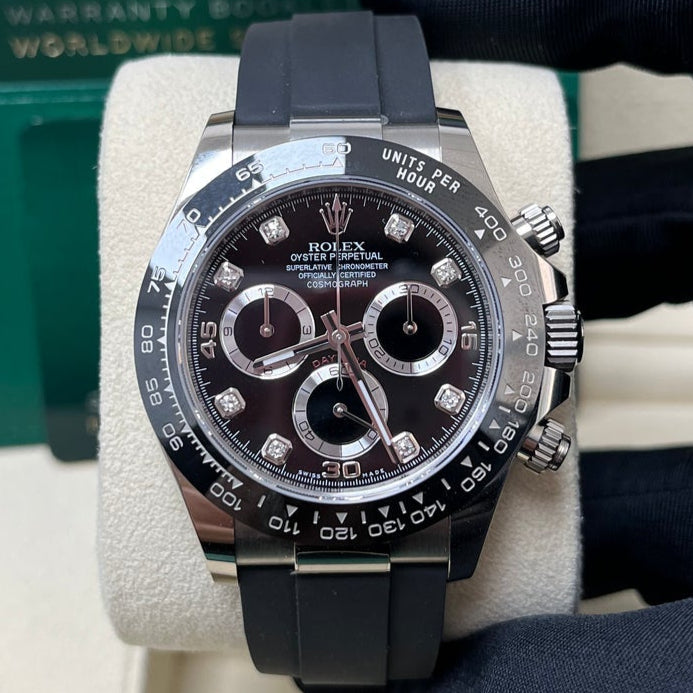 Rolex Daytona Cosmograph Daytona White Gold 40mm Oysterflex Band Black Diamond Dial - 116519LN