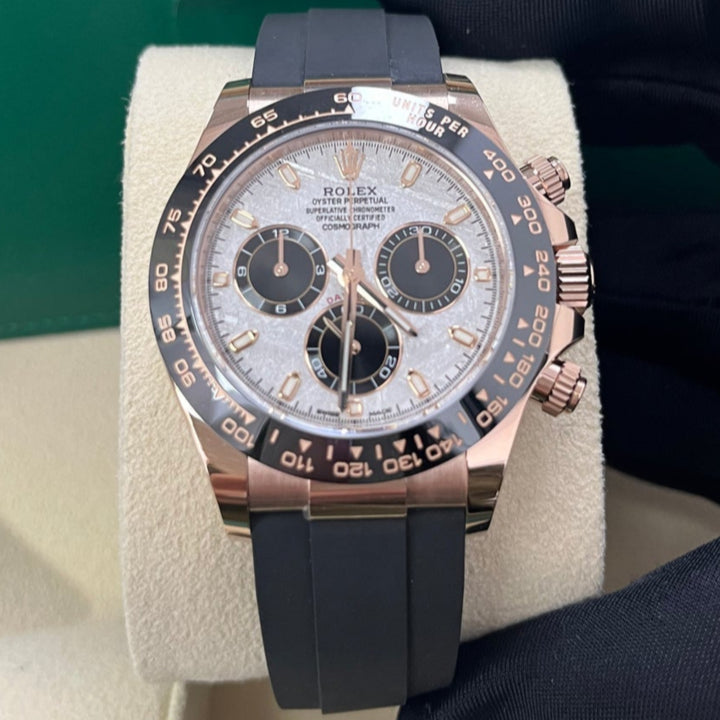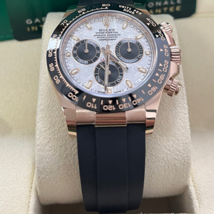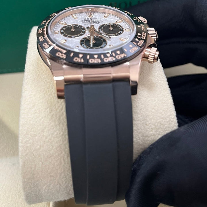 Rolex Daytona Everose Gold Cosmograph Daytona 40 Watch Meteorite Black Index Dial Oysterflex 116515ln