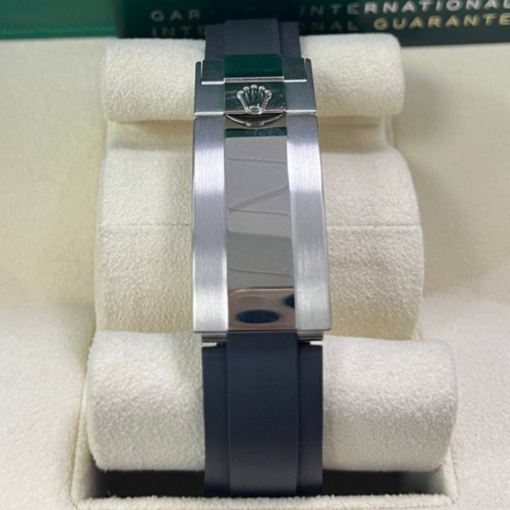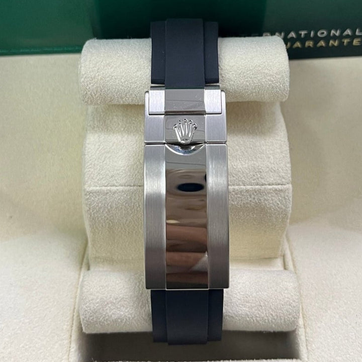 40mm 18K white gold case, screw-down back, screw-down crown with triplock triple waterproofness system, black monobloc cerachrom bezel in ceramic with moulded tachymetric scale, scratch-resistant sapphire crystal scratch-resistant sapphire, steel and bright black dial, index hour markers, 4131, manufacture Rolex perpetual, mechanical chronograph, self-winding movement with centre hour and minute hands, small seconds hand at 6 o'clock, chronograph via centre seconds hand, 30-minute counter at 3 o'clock and 12-hour counter at 9 o'clock, stop seconds for exact time setting, approximately 72 hours of power reserve, Oysterflex strap made from flexible metal blades overmoulded with high-performance elastomer, folding Oysterlock safety buckle with rolex glidelock extension system. Waterproof to 100 metres / 330 feet.
