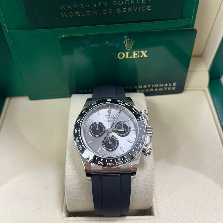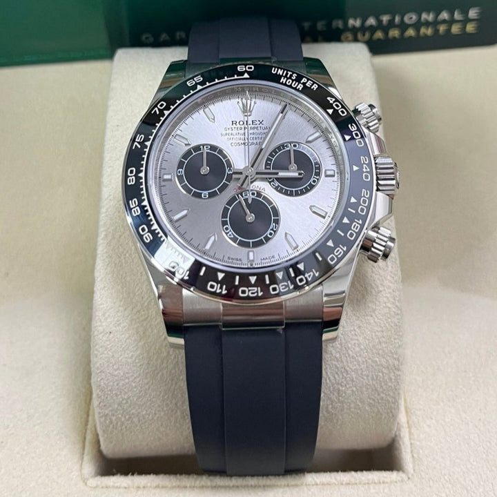 Rolex Daytona White Gold Cosmograph Daytona Silver And Black Index Dial - Oysterflex Strap 126519LN