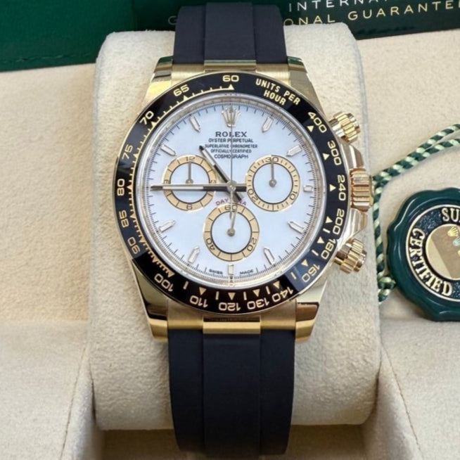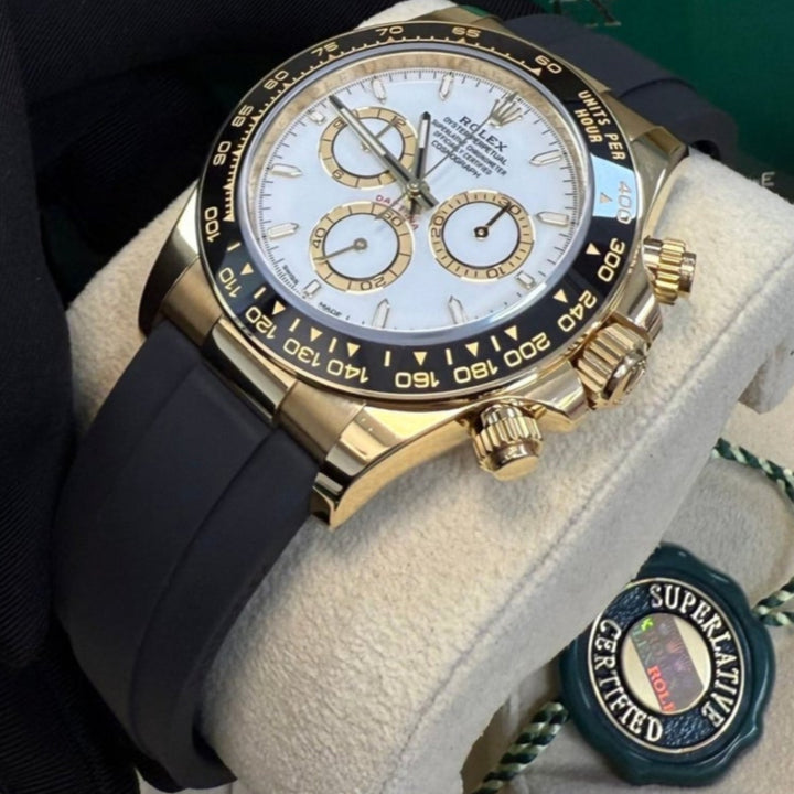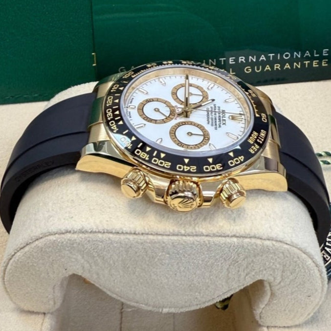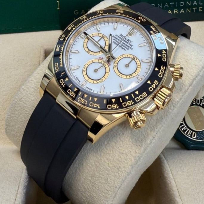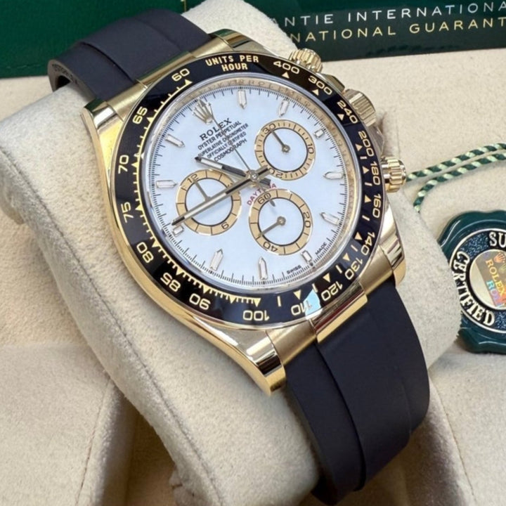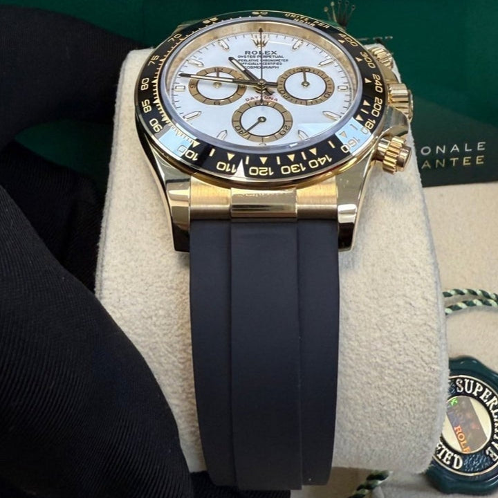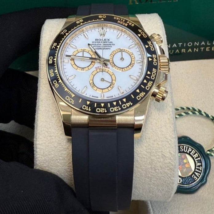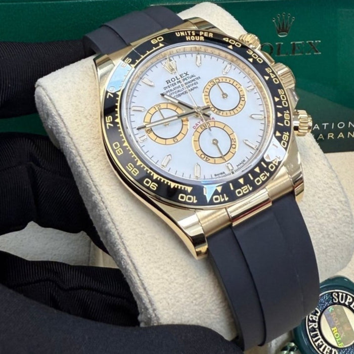 Rolex Daytona Yellow Gold Black Cerachrom Bezel White Index Dial Oysterflex Strap 126518ln