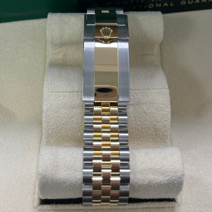 The Jubilee bracelet on this model is equipped with a Rolex-designed and -patented Oysterlock folding safety clasp, which prevents accidental opening. It also features the Easylink comfort extension link, developed by the brand, which allows the bracelet length to be increased by approximately 5 mm. A concealed attachment system ensures seamless visual continuity between the bracelet and case.