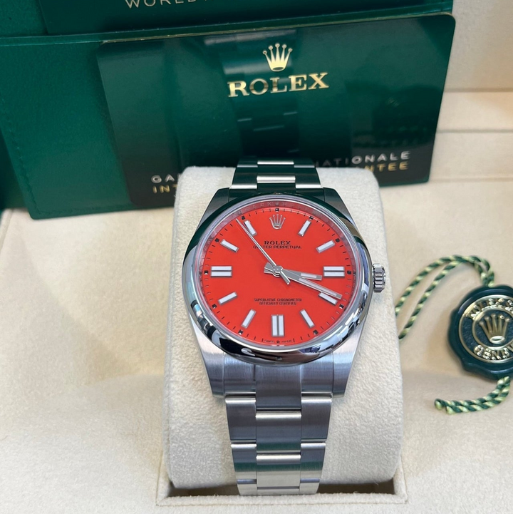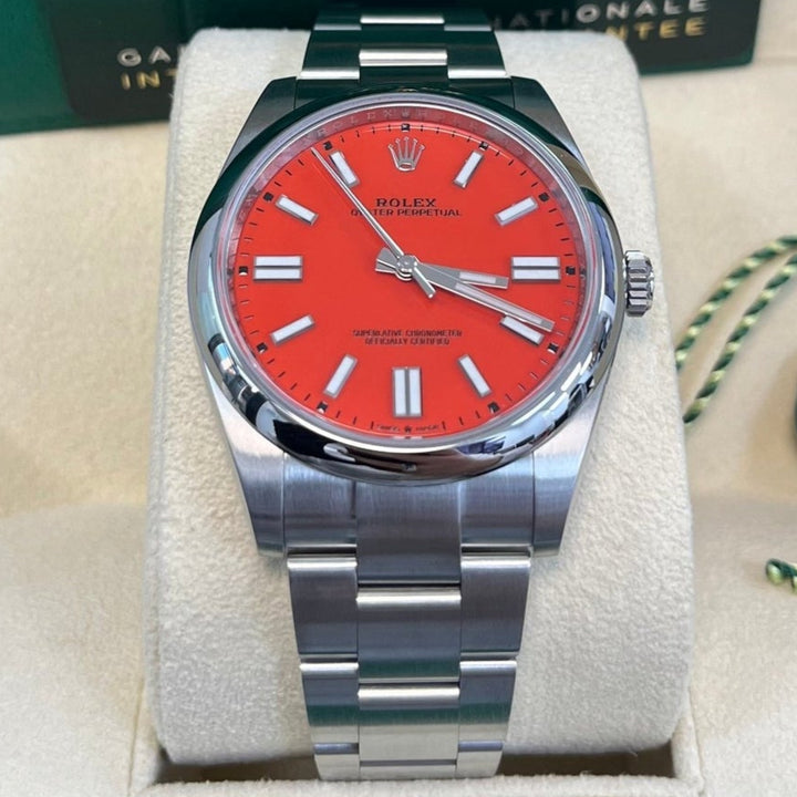 Rolex Oyster Perpetual 41 Red Dial Oyster Bracelet 124300