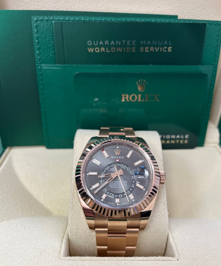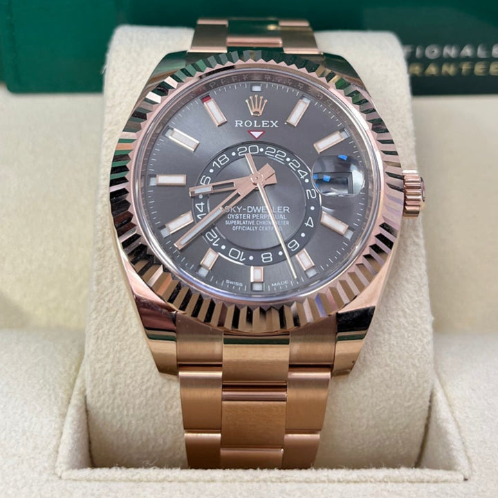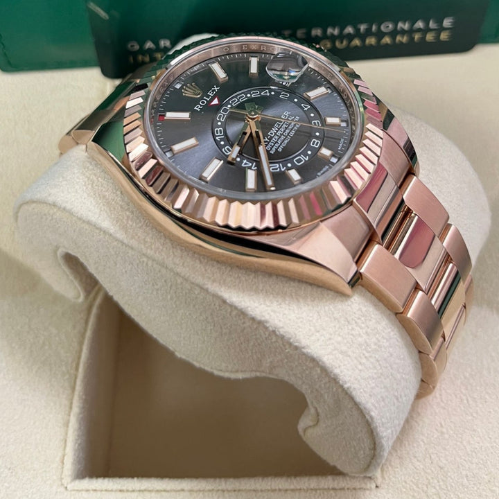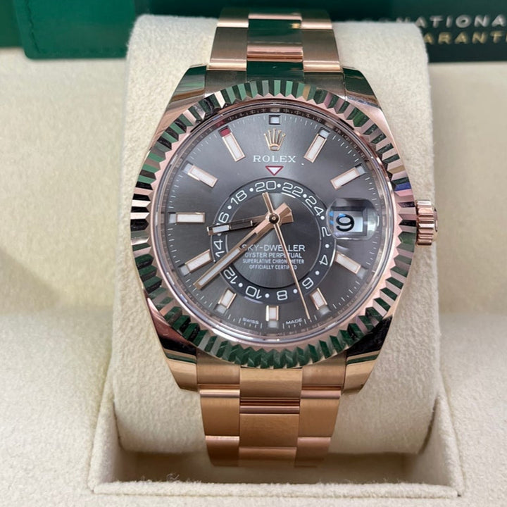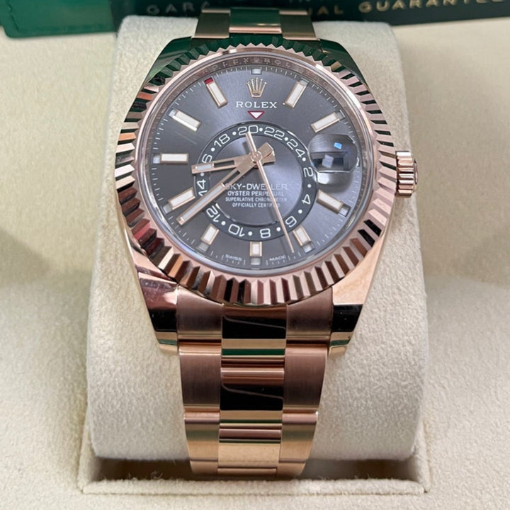 Rolex Everose Gold Sky-Dweller Dark Rhodium Index Dial Oyster Bracelet