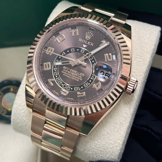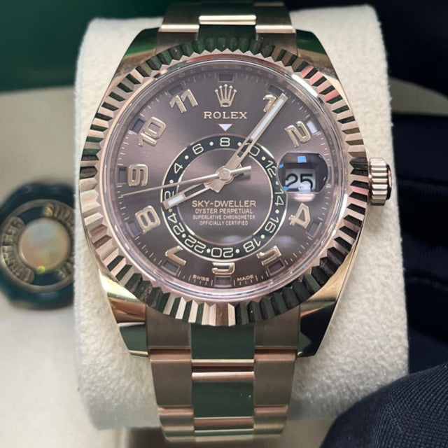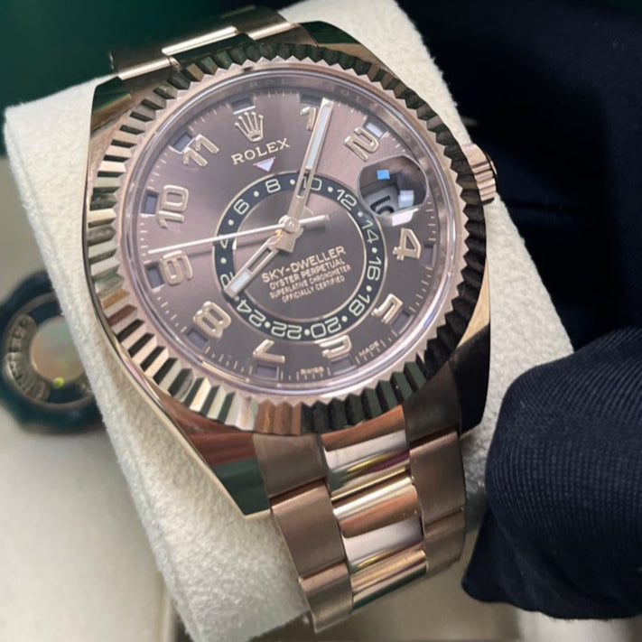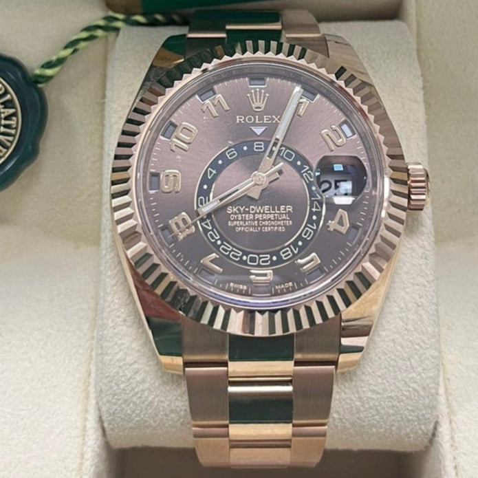 Rolex Sky-Dweller Rose Gold Sky-Dweller Chocolate Sunray Arabic Dial (Reference # 326935)