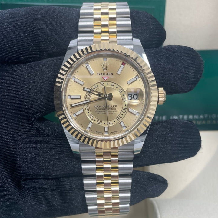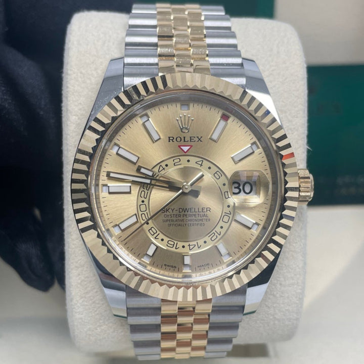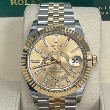 Rolex Sky-Dweller Two-Tone Stainless Steel - Yellow Gold Champagne Index Dial -Jubilee Bracelet (Ref# 326933)