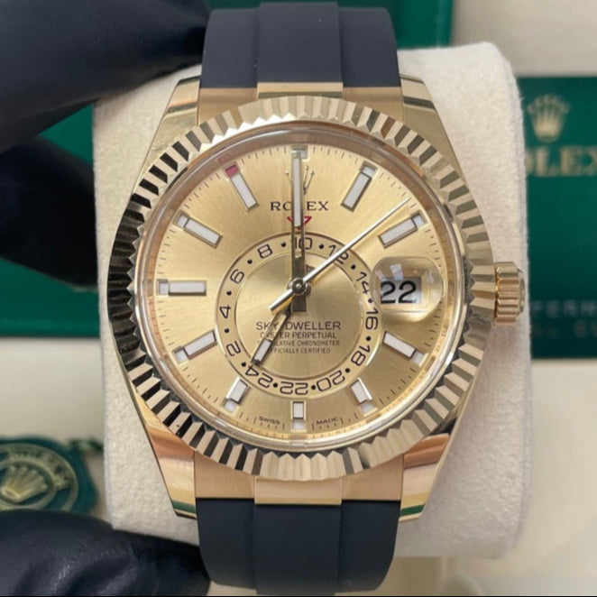 Rolex Sky-Dweller Yellow Gold - Champagne Index Dial - Oysterflex Bracelet - (Ref# 326238)