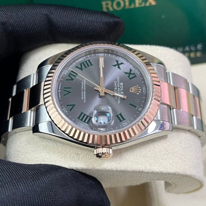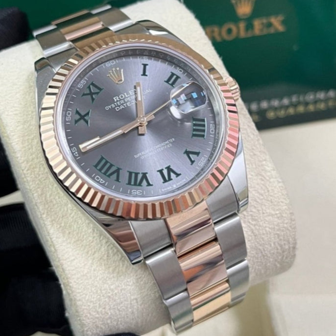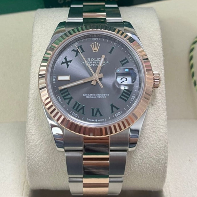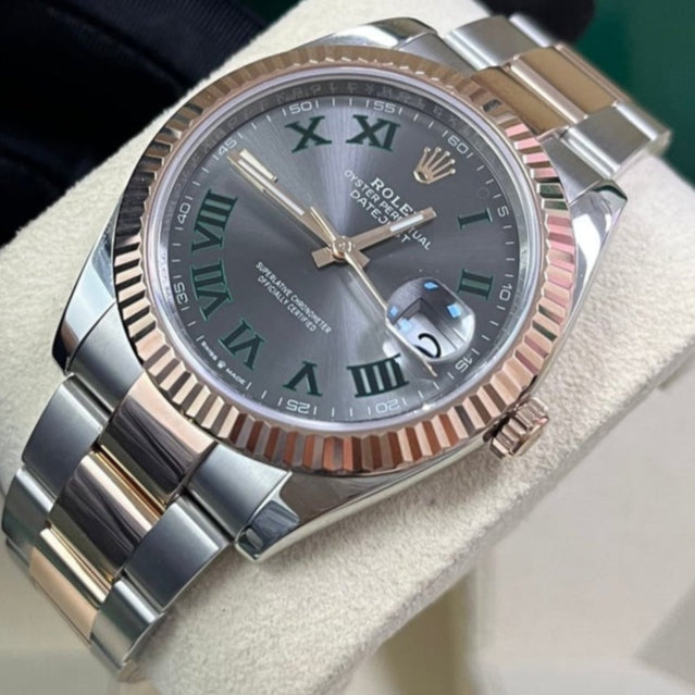 Rolex Steel and Rose Gold Datejust 41mm - Fluted Bezel - Slate Gray Wimbledon Roman Dial (Reference #126331)