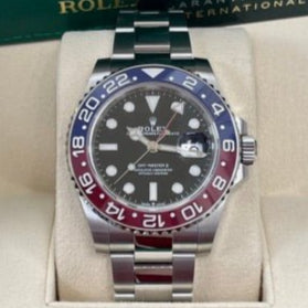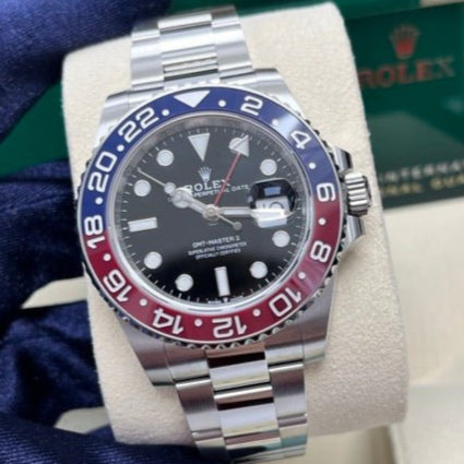 Rolex Steel GMT-Master II 40 Watch - Blue And Red Pepsi Bezel - Black Dial - Oyster Bracelet (Ref# 126710BLRO)