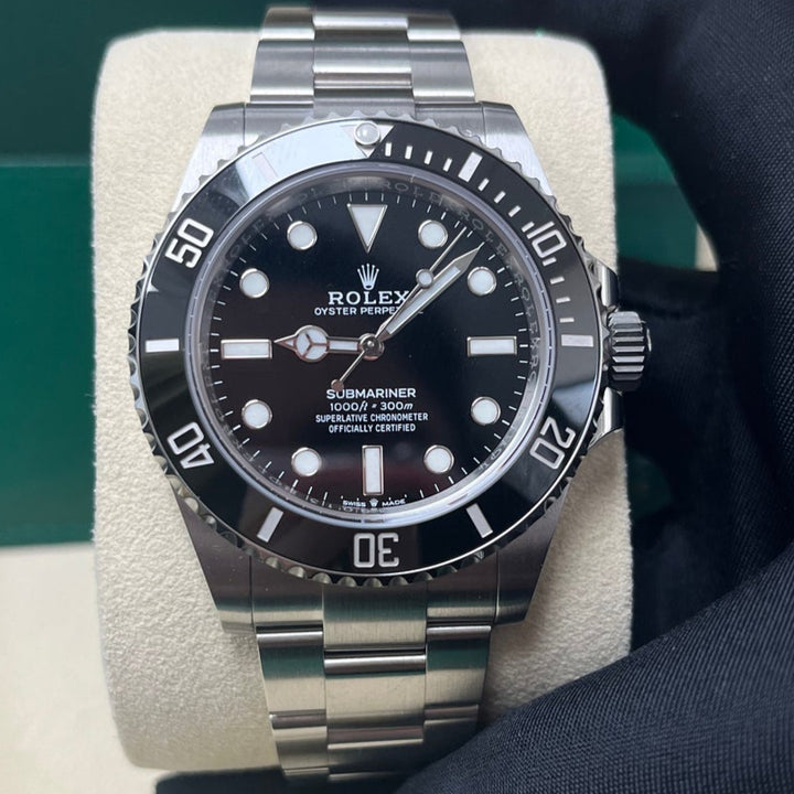 The Rolex Submariner No Date Black Dial 124060 embodies Rolex’s renowned craftsmanship and innovation, offering a seamless blend of functionality and timeless design. Crafted from durable Oystersteel, its 41mm case resists corrosion while maintaining a polished aesthetic for any occasion.