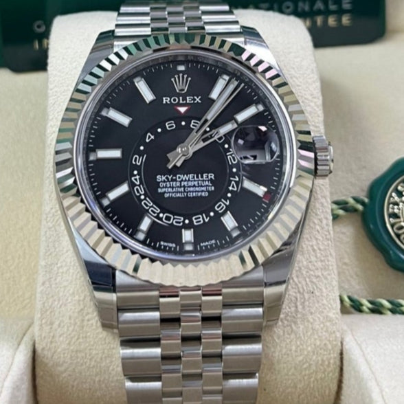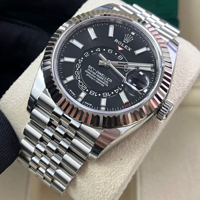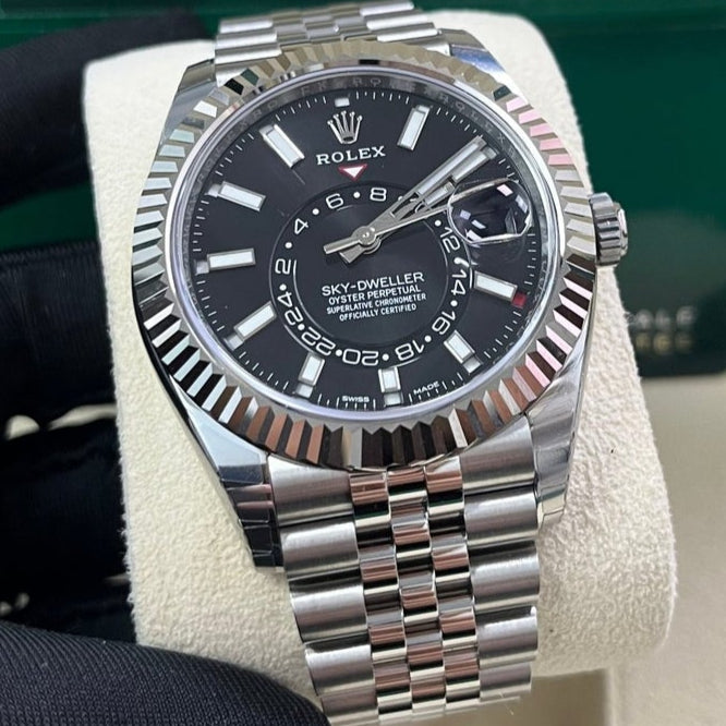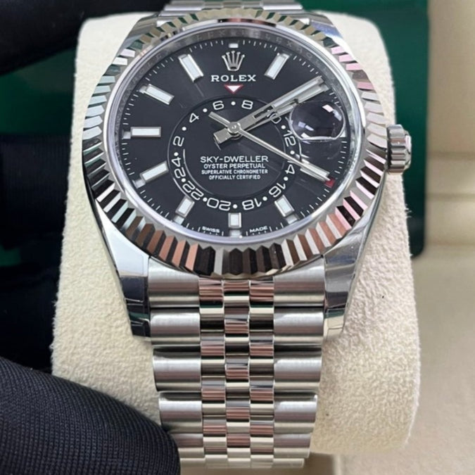 Rolex White Rolesor Sky-Dweller Black Index Dial Jubilee Bracelet (Ref# 326934)