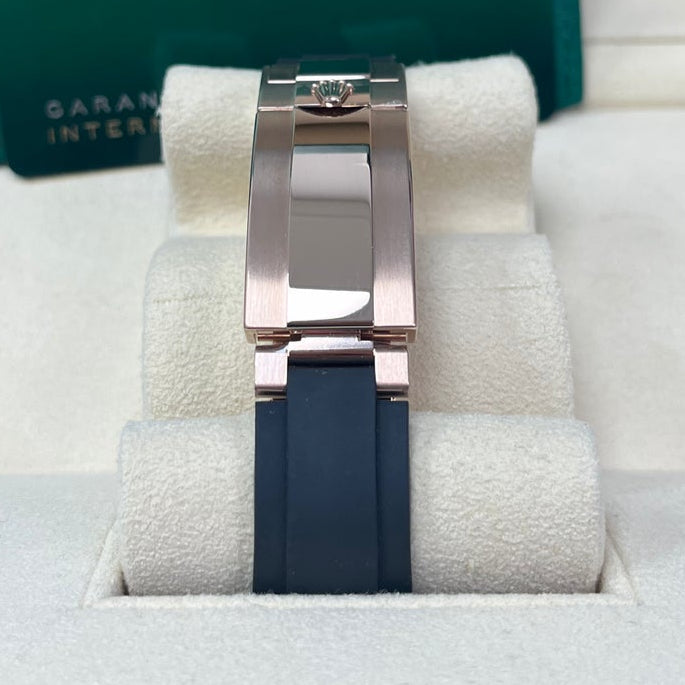40mm 18K Everose gold case, screw-down crown with triplock triple waterproofness system, bidirectional rotatable 60-minute graduated bezel with matt black Cerachrom insert in ceramic, scratch-resistant sapphire crystal with cyclops lens over the date, black dial, Rolex calibre 3235 automatic movement, approximately 70 hours of power reserve, black Oysterflex strap made from flexible metal blades overmoulded with high-performance elastomer, folding Oysterlock buckle with glidelock extension system. Waterproof to 100 meters.