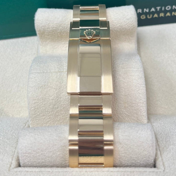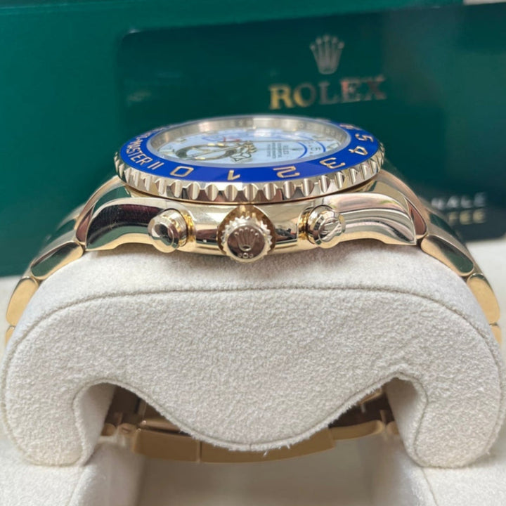 44mm 18K yellow gold case, 90 degree rotatable blue ceramic Ring Command bezel, white dial, automatic movement with programmable countdown function, and Oysterlock bracelet.