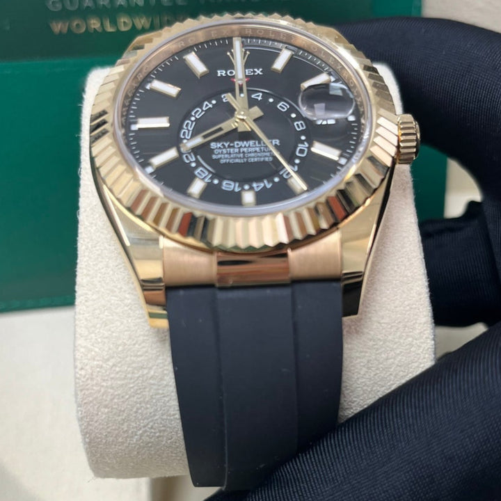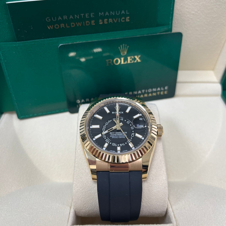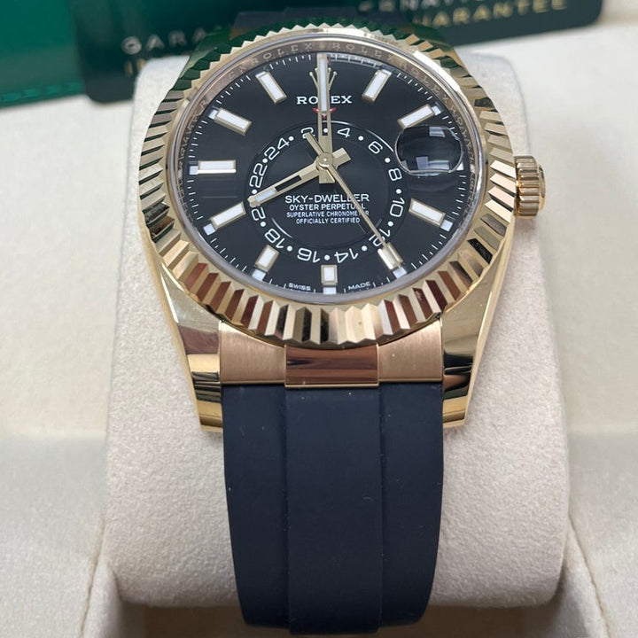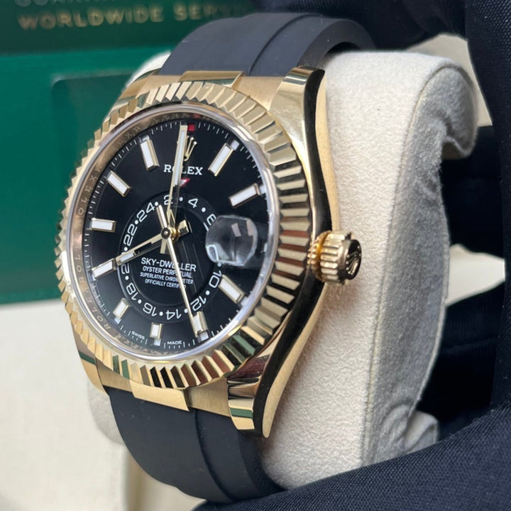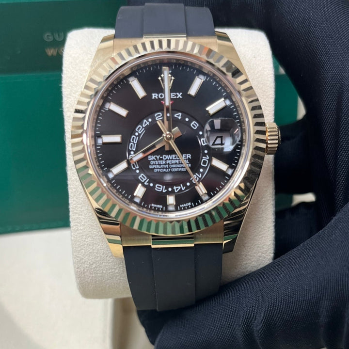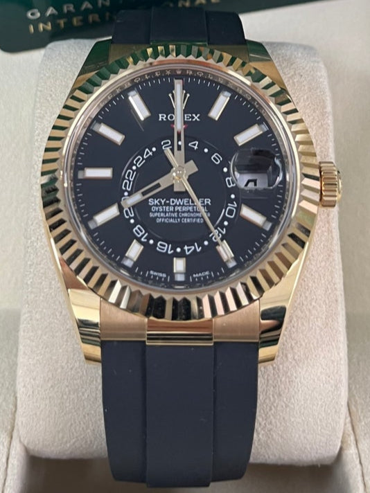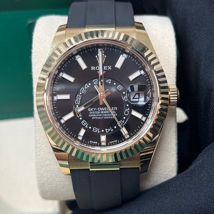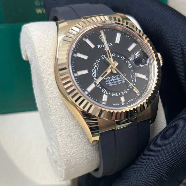 Rolex Yellow Gold Sky-Dweller Watch - Black Index Dial - Oysterflex Bracelet (Ref# 326238)
