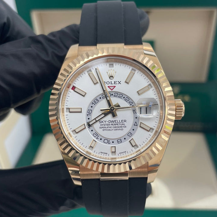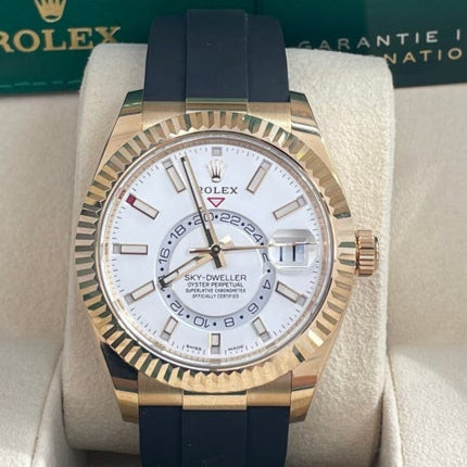 Rolex Yellow Gold Sky-Dweller Watch - White Index Dial - Oysterflex Bracelet (Ref# 326238)